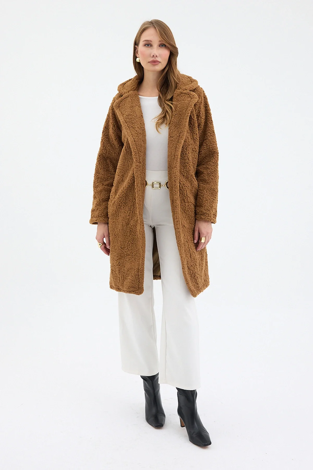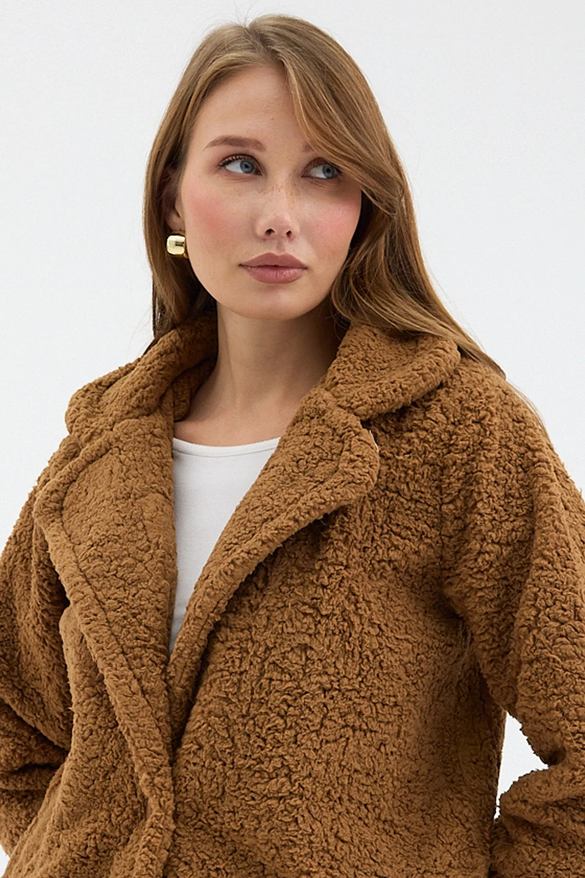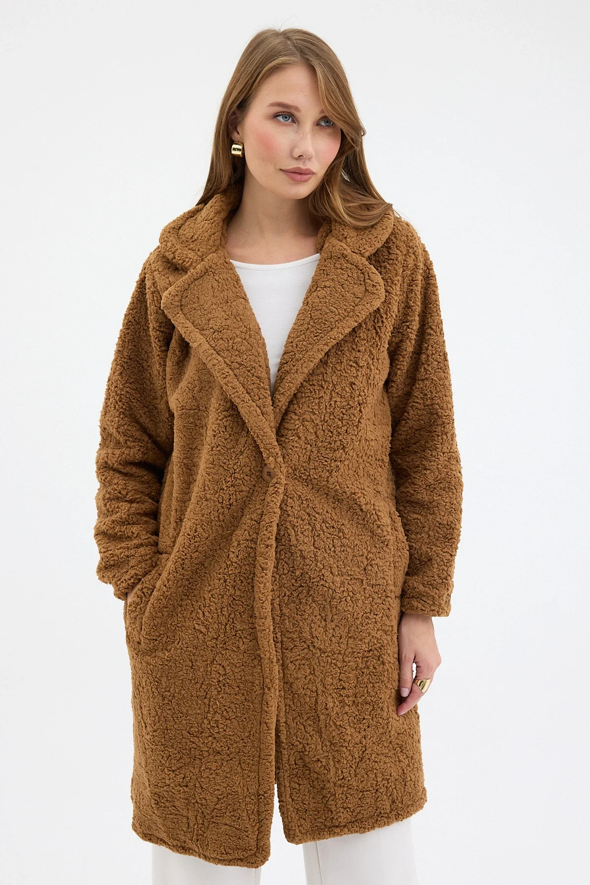 Bu şık kaban; camel rengi, tek düğmeli kapaması, çift cepleri ve astarlı yapısıyla hem dikkat çekici hem kullanışlı bir dış giyim seçeneği sunar. Buklet / kaşe dokusu sayesinde hem sıcak tutar hem de doku efektiyle stil katar.