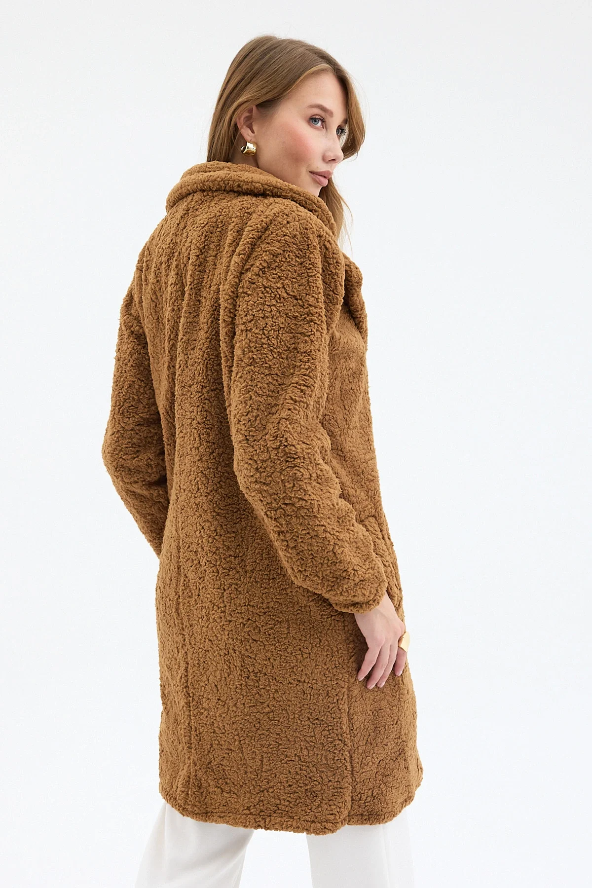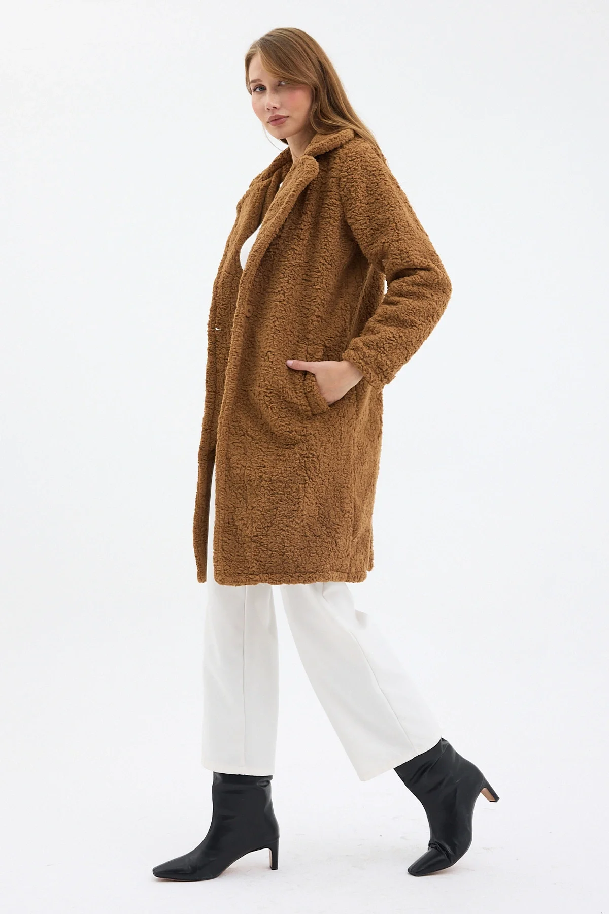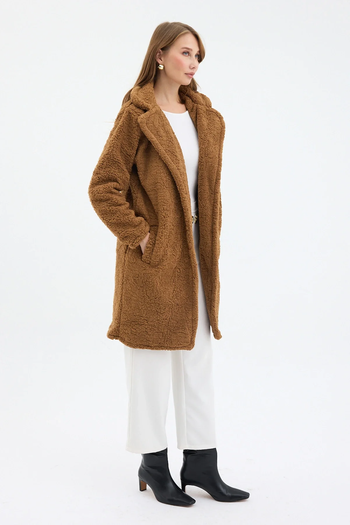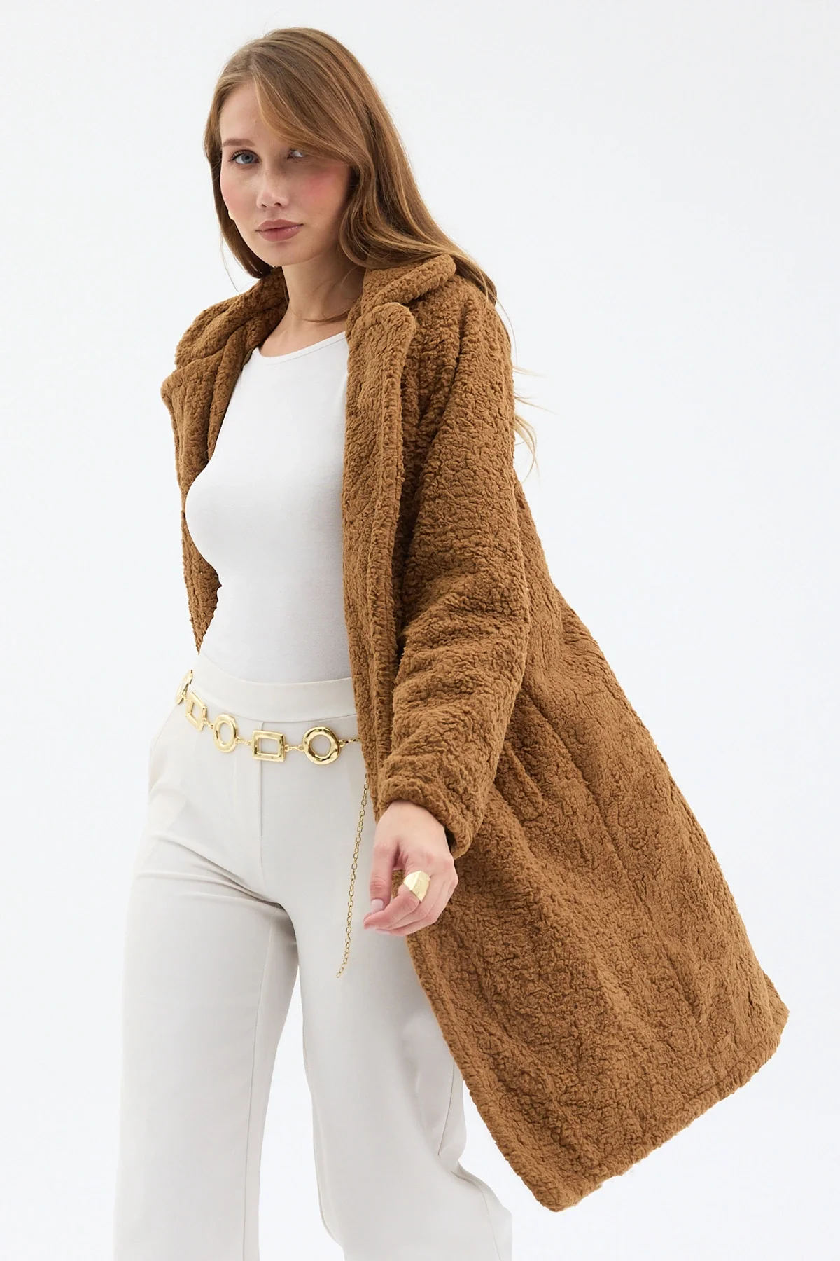 Bu şık kaban; camel rengi, tek düğmeli kapaması, çift cepleri ve astarlı yapısıyla hem dikkat çekici hem kullanışlı bir dış giyim seçeneği sunar. Buklet / kaşe dokusu sayesinde hem sıcak tutar hem de doku efektiyle stil katar.