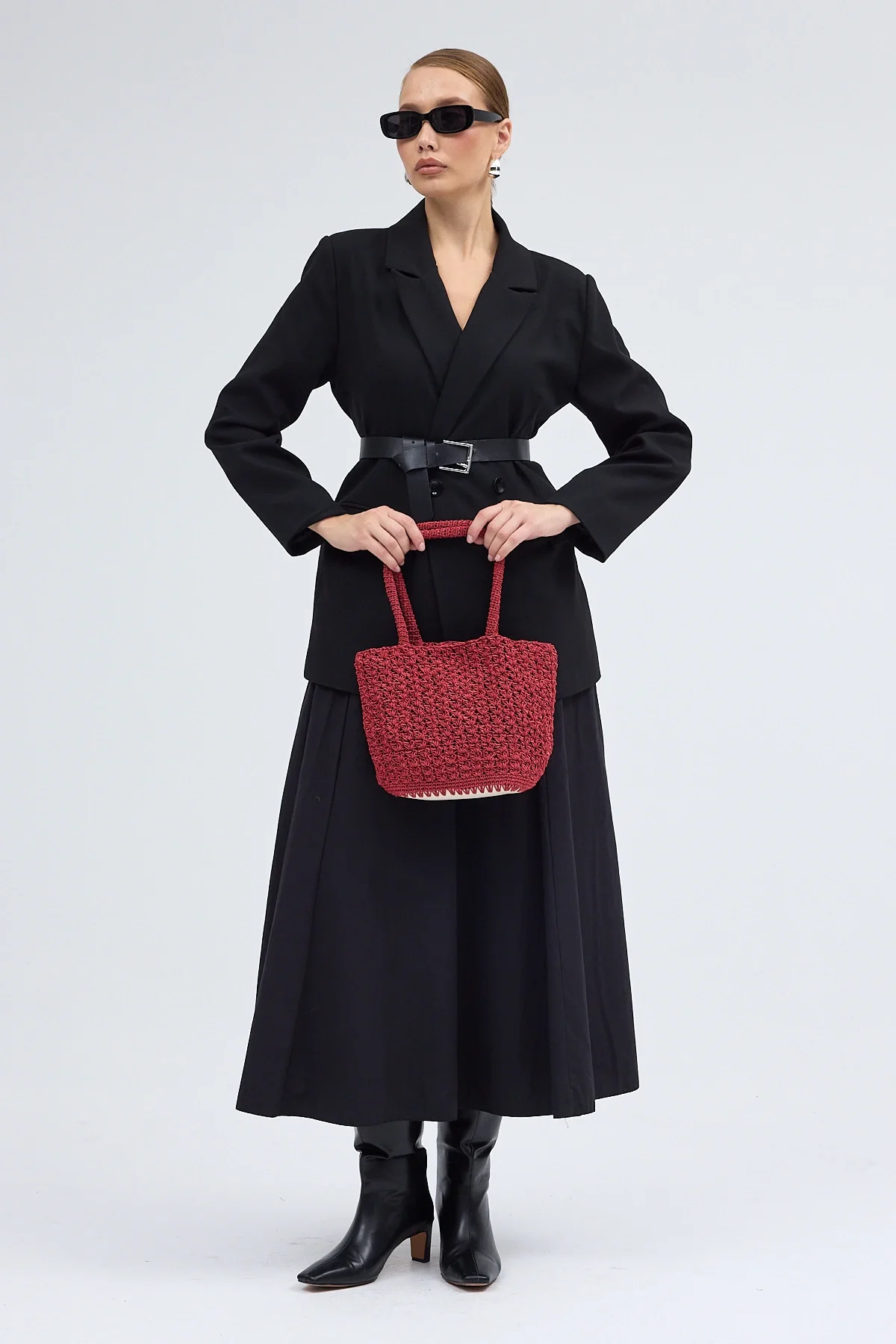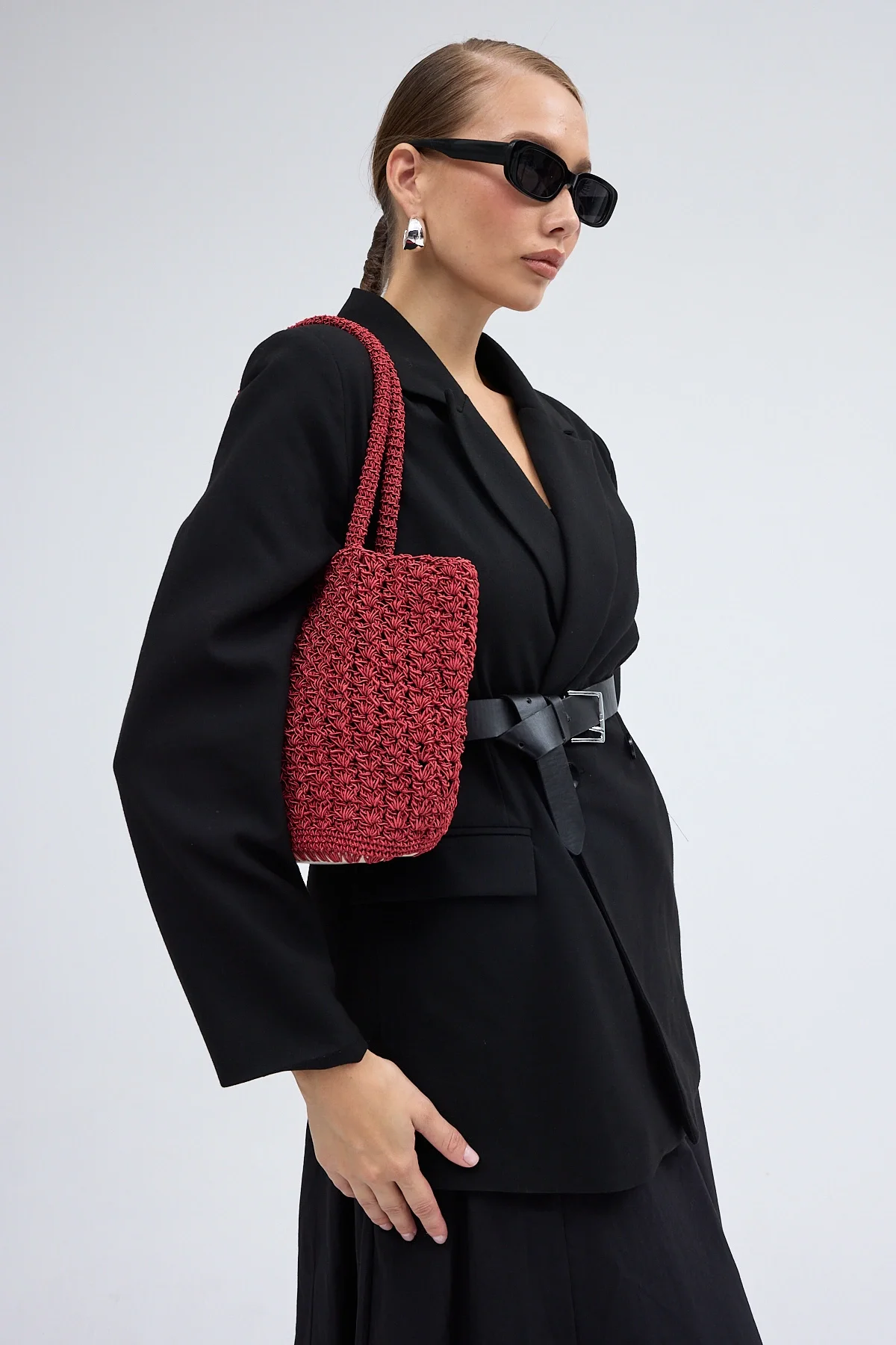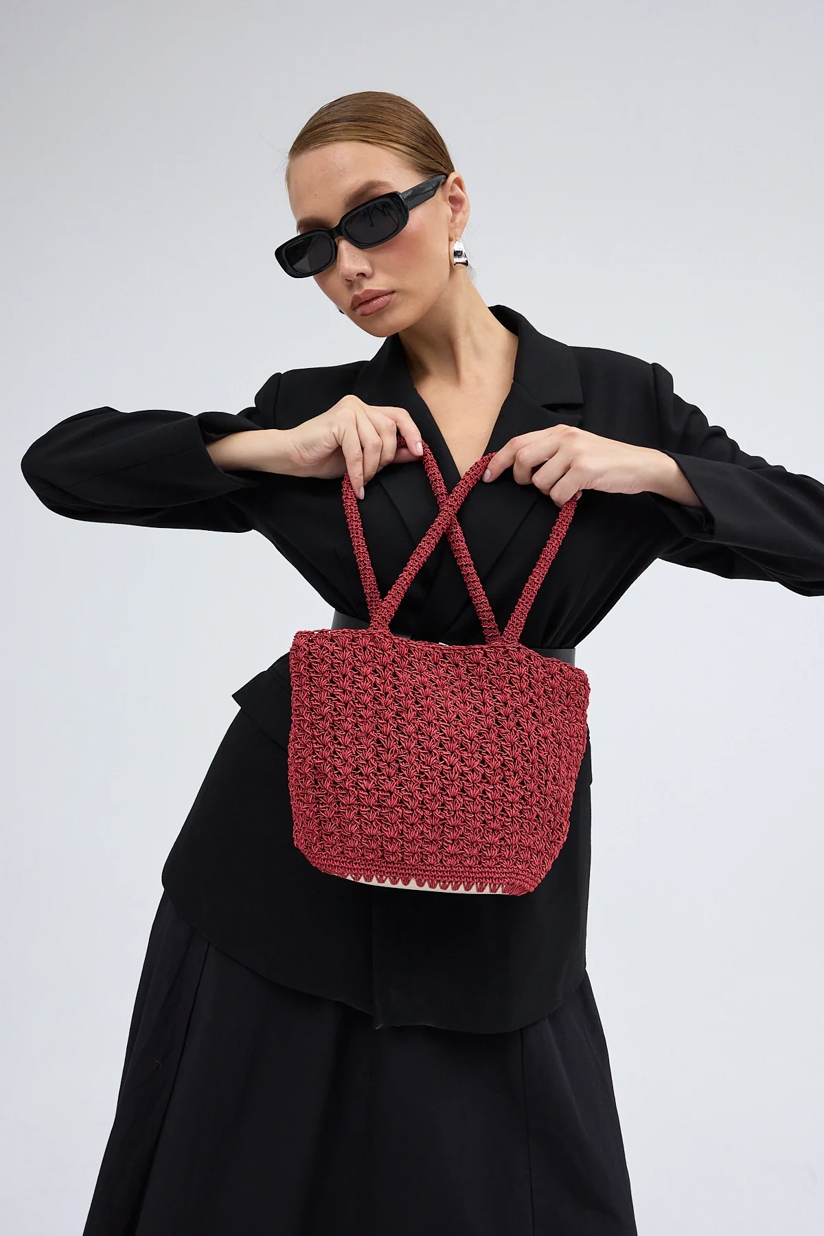 El yapımı Astarlı Hasır Çanta Bordo Siyah