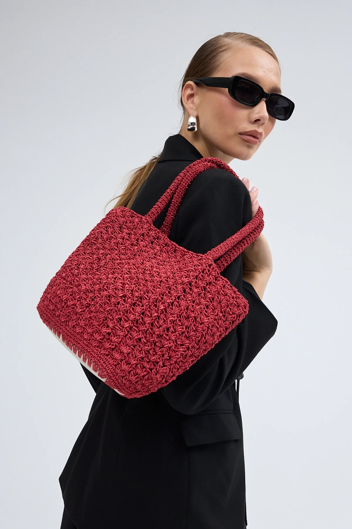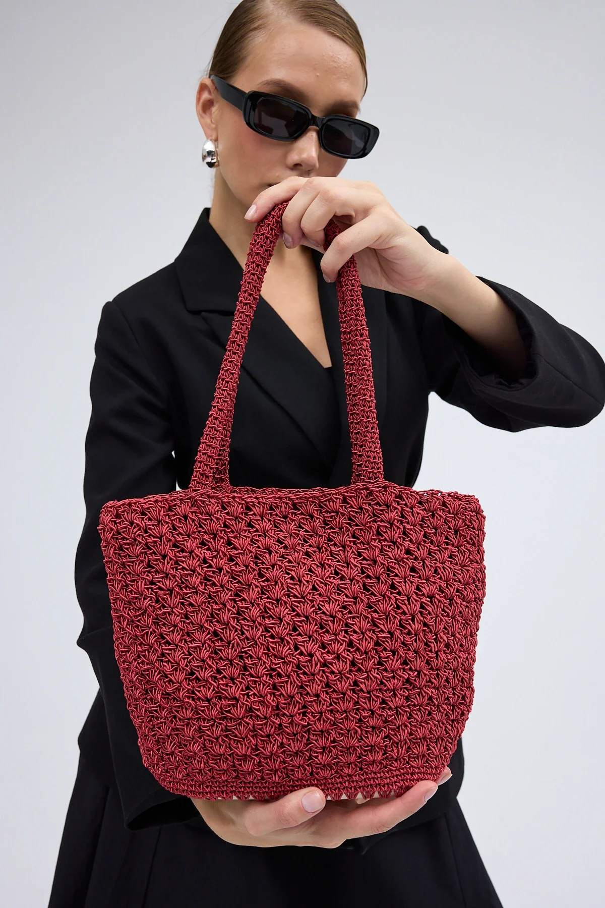 El yapımı Astarlı Hasır Çanta Bordo