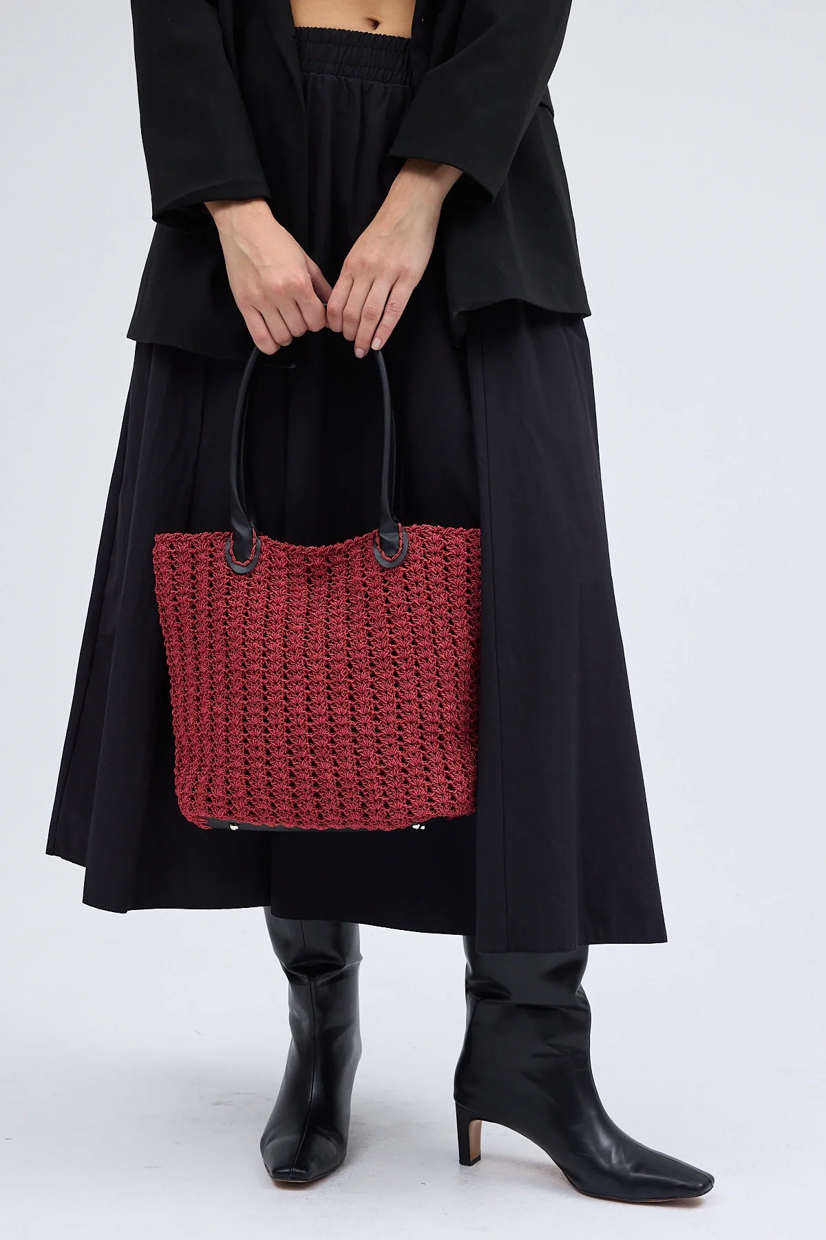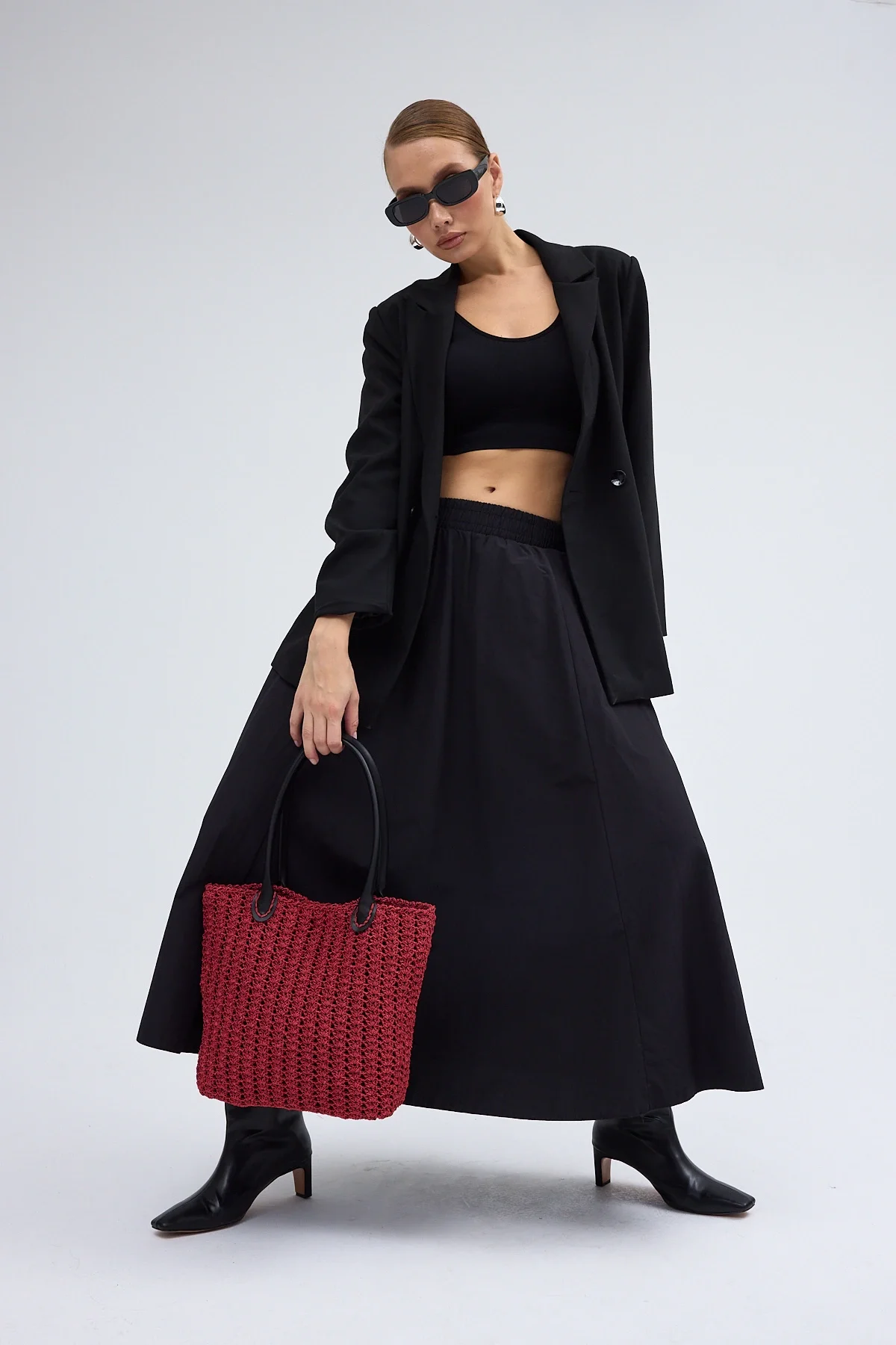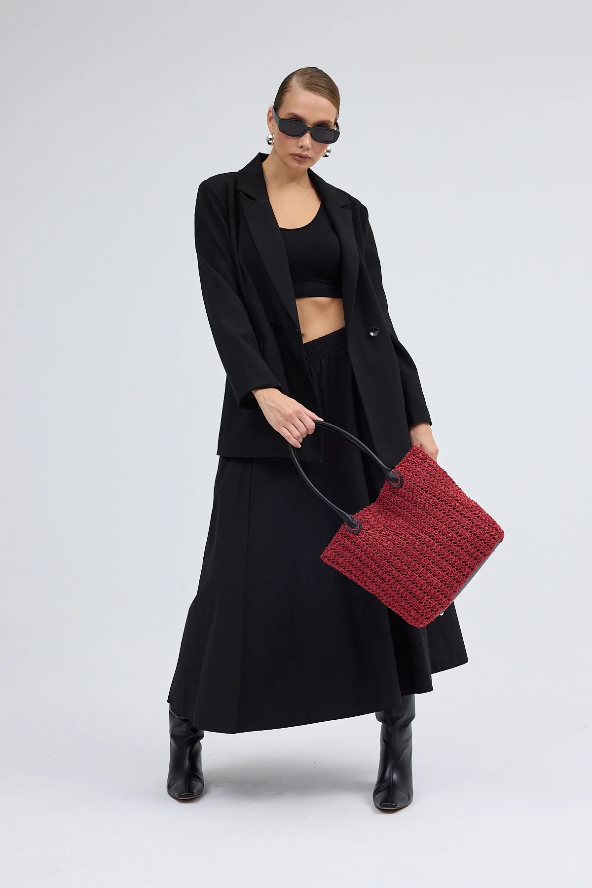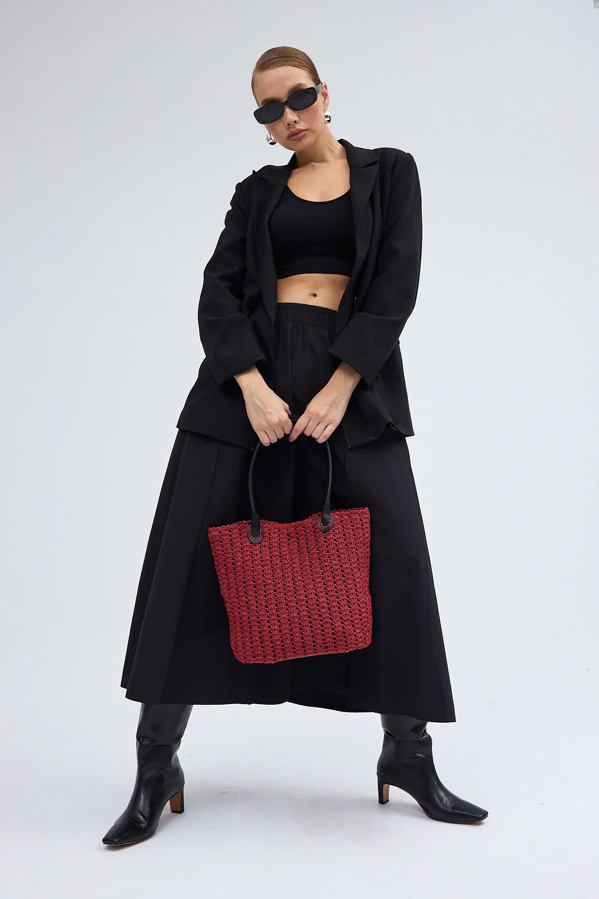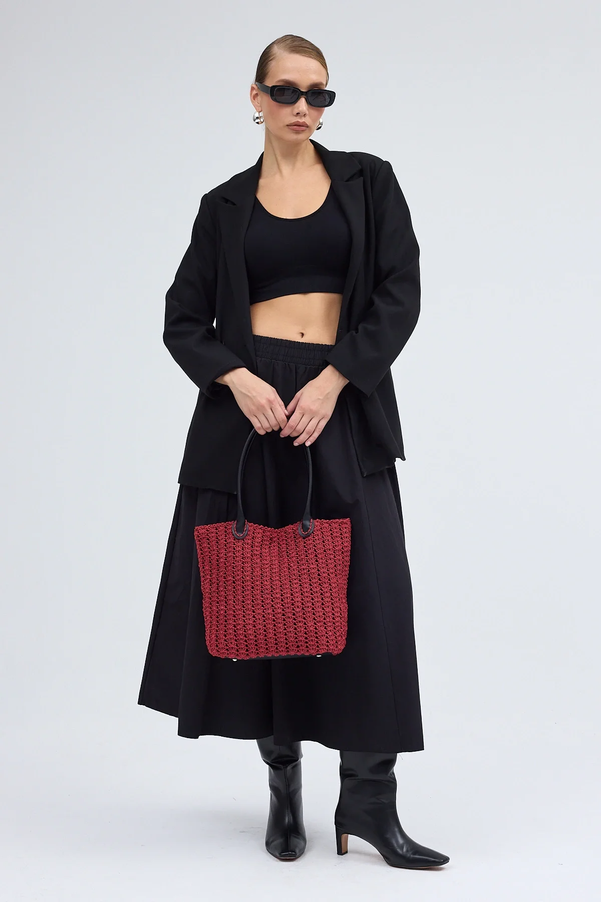 El yapımı Astarlı Hasır Çanta Bordo Siyah