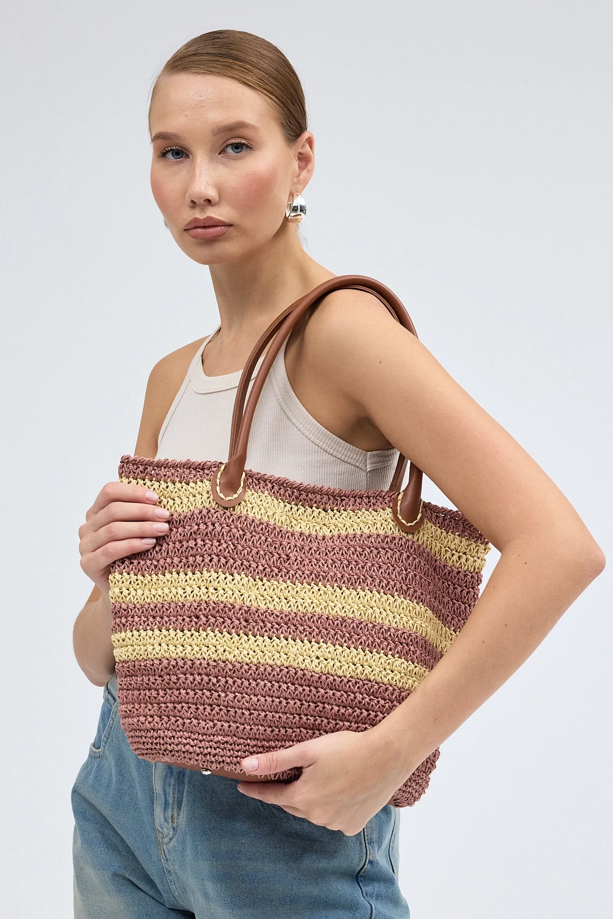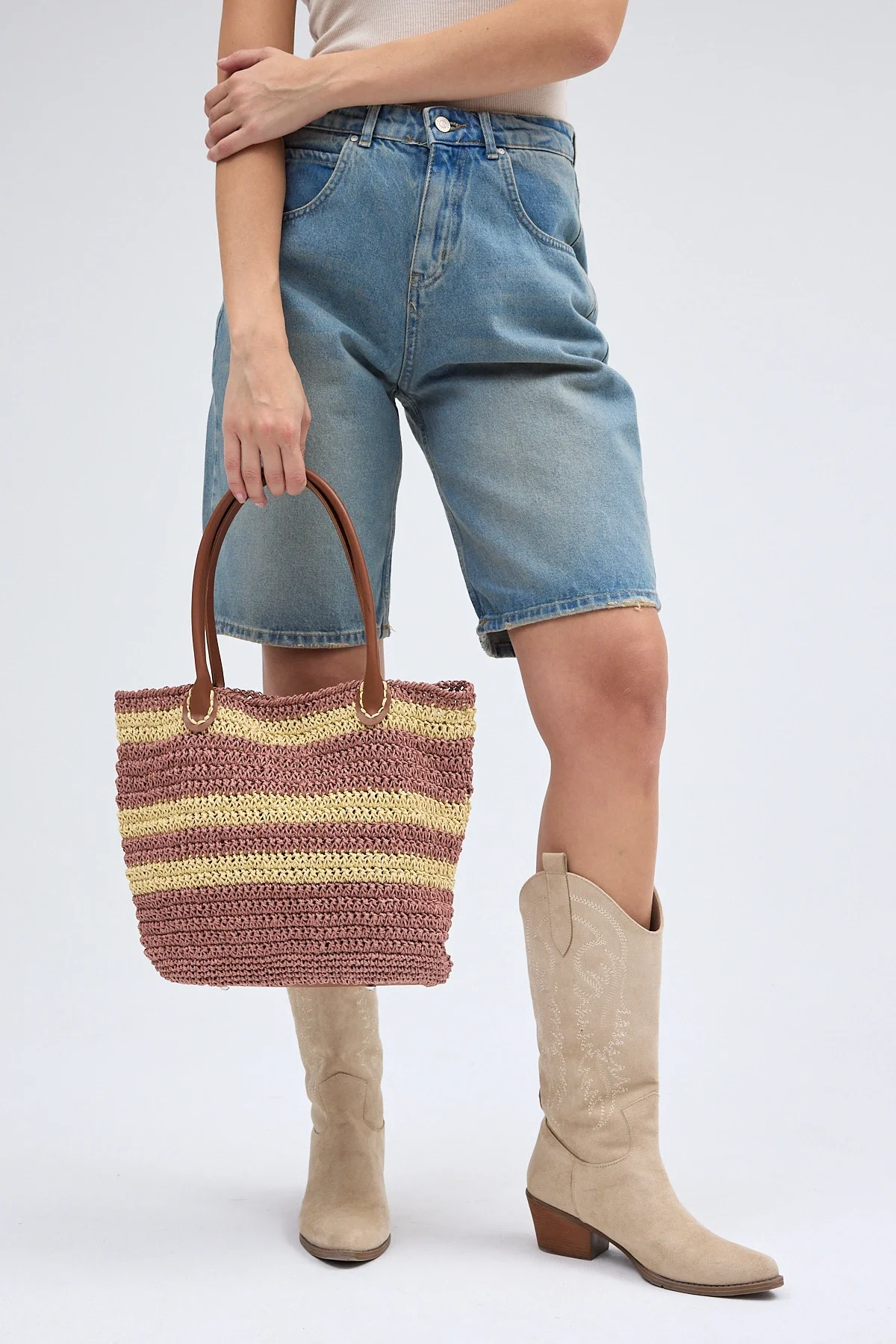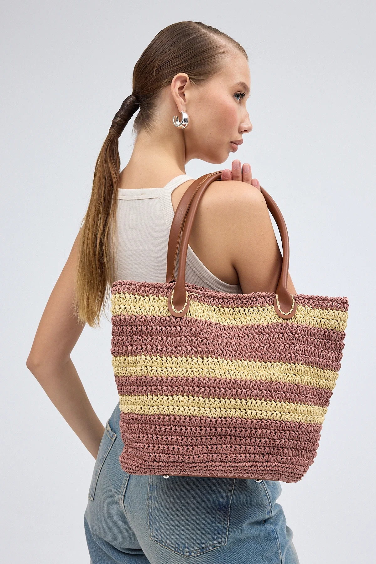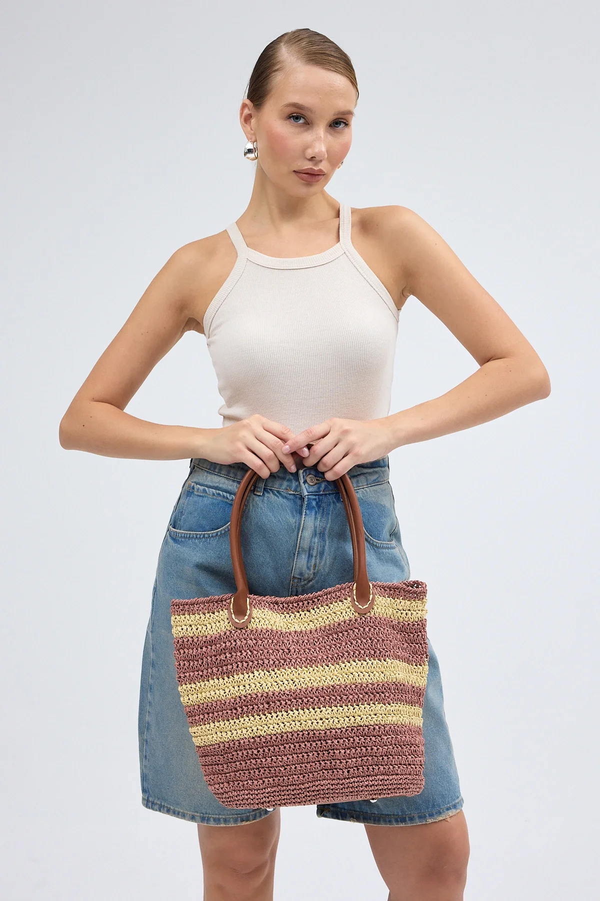 El yapımı Astarlı Kahverengi Hasır Çanta
