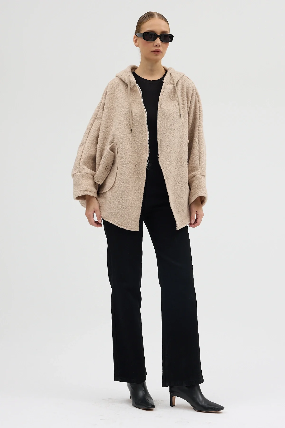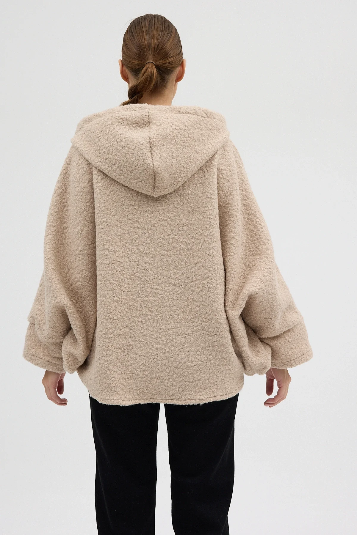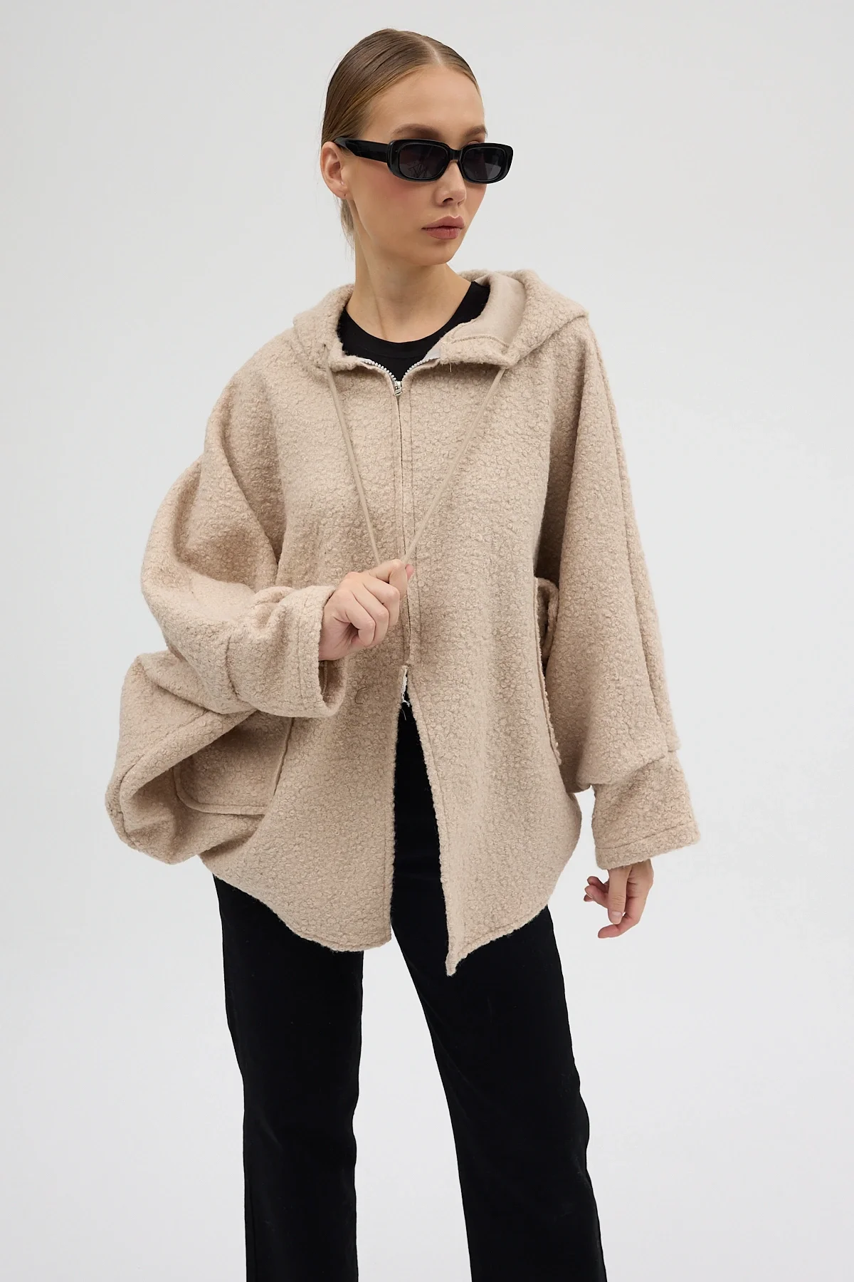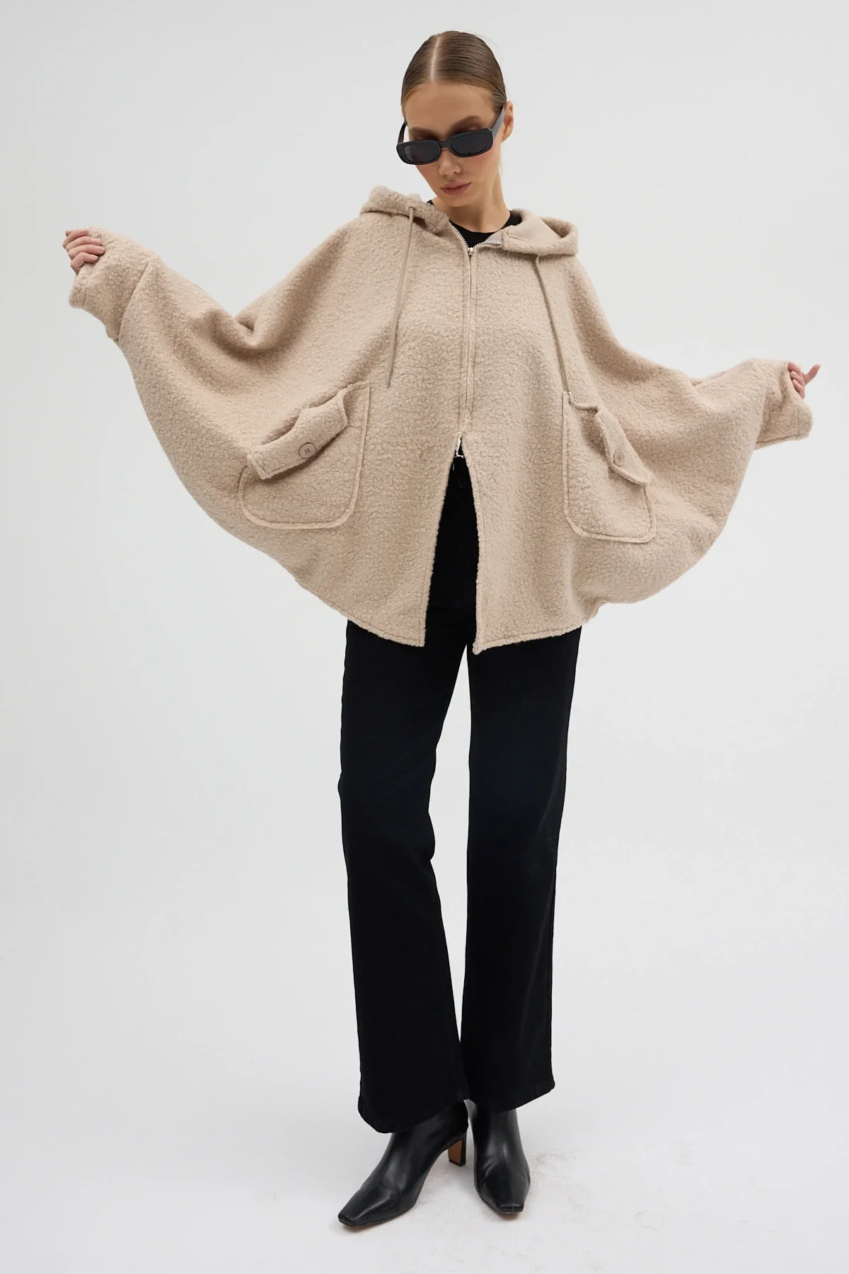 Oversize kesimiyle rahatlığı ön planda tutan bu buklet ceket, kapüşon detayı ve büyük cepleriyle hem spor hem şık kombinlere uyum sağlar. Fermuarlı kapanışı sayesinde pratik kullanım sunarken, kalın ve yumuşak dokusuyla gün boyu sıcak tutar. Mevsim geçişlerinde mont olarak da rahatlıkla kullanılabilir.