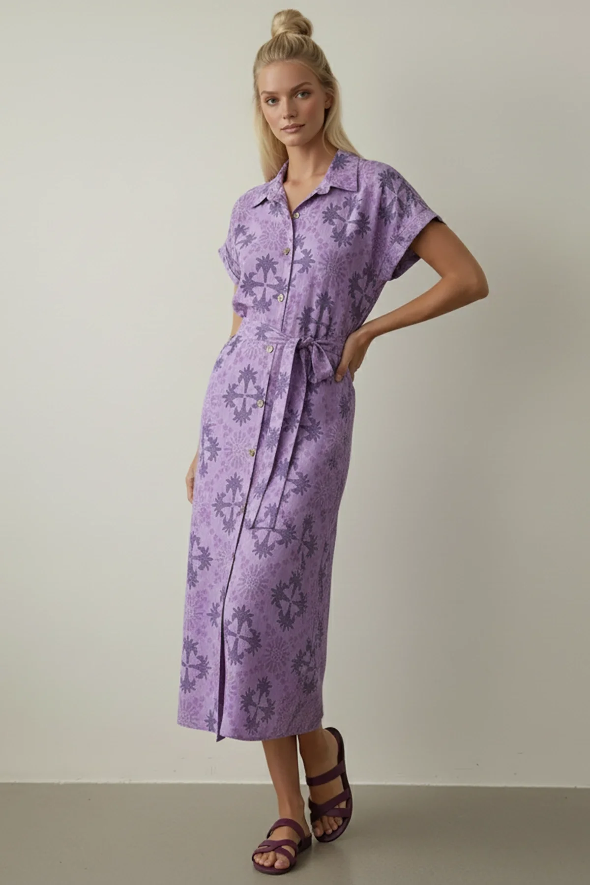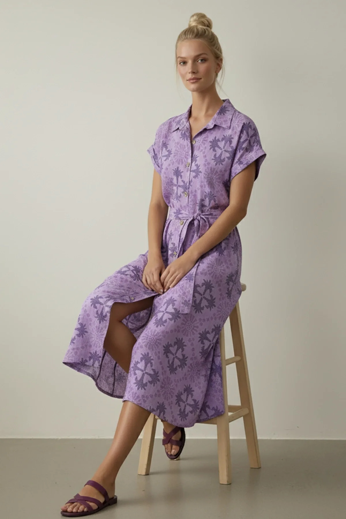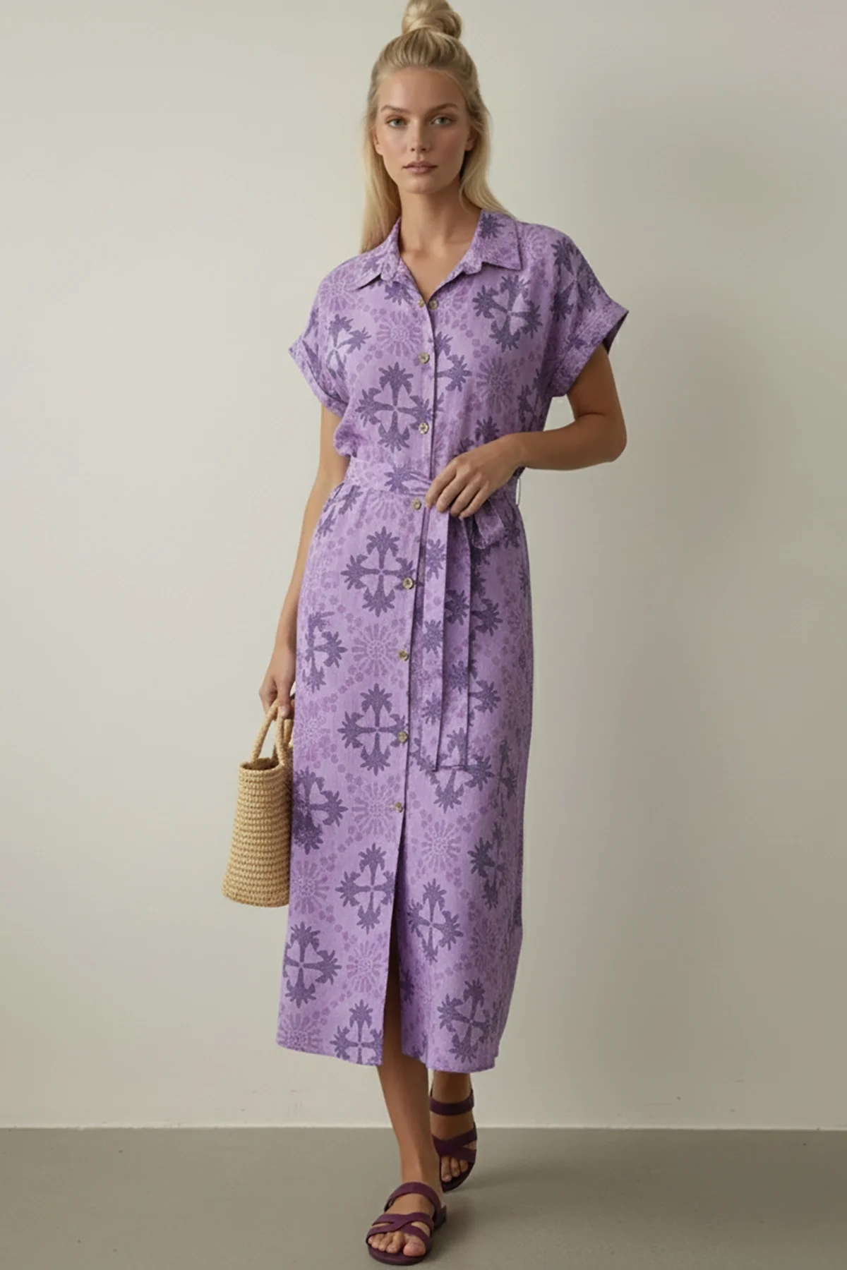 Rahatlığı ve şıklığı bir araya getiren bu mavi desenli gömlek elbise, yaz günlerinin favorisi olmaya aday! Yumuşak dokulu kumaşı ve modern kesimiyle hem konfor sunar hem de stilinizi ön plana çıkarır. Önden düğmeli yapısı ve belden bağlamalı kuşağı sayesinde vücuda oturan zarif bir siluet yaratır.