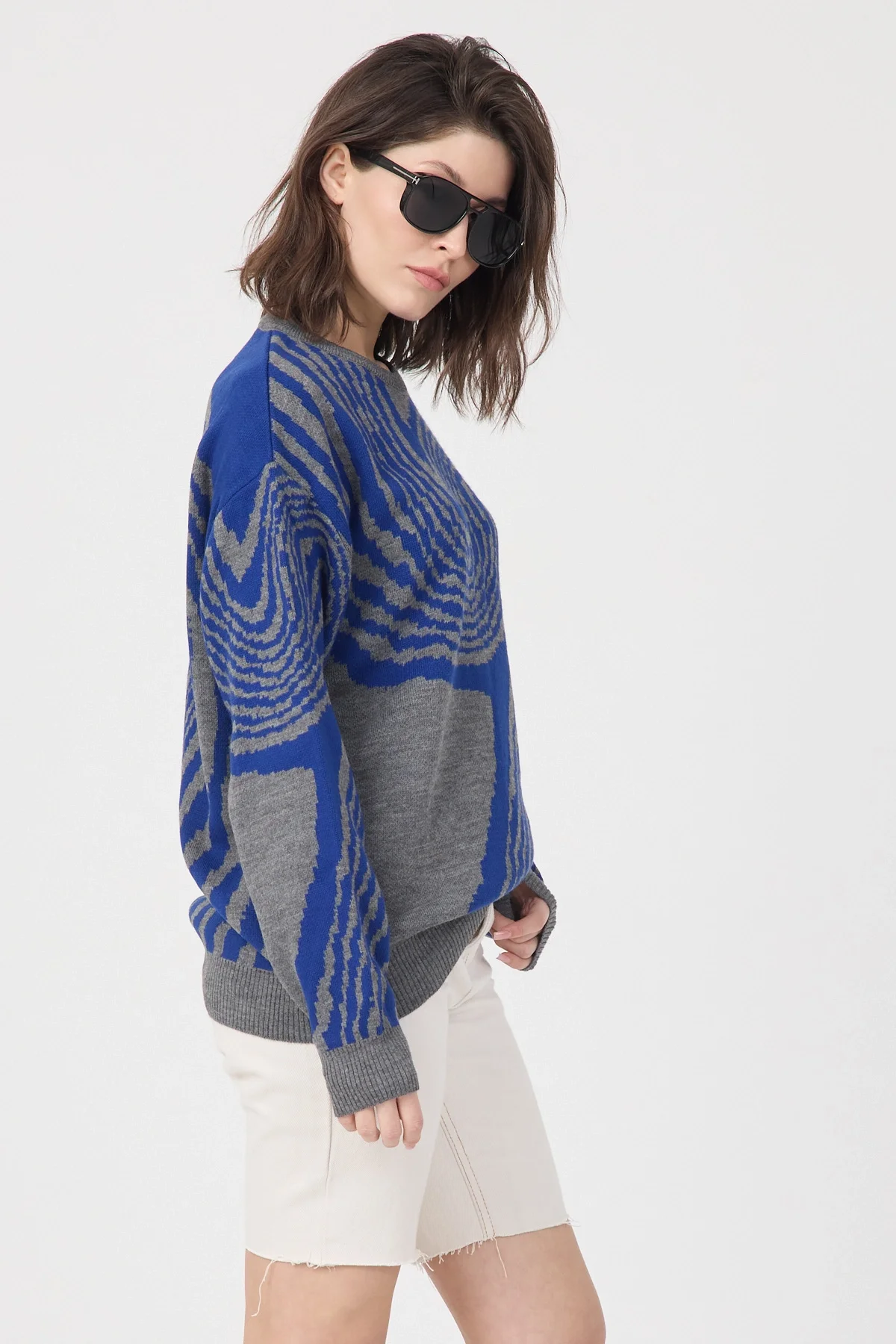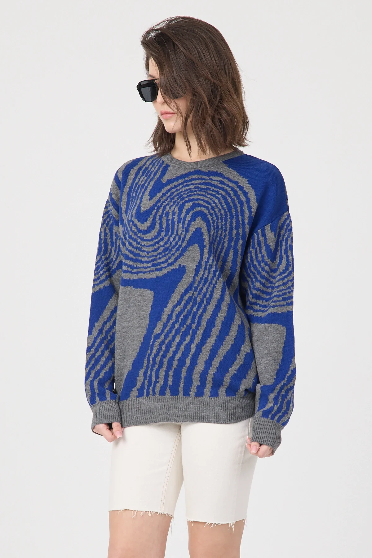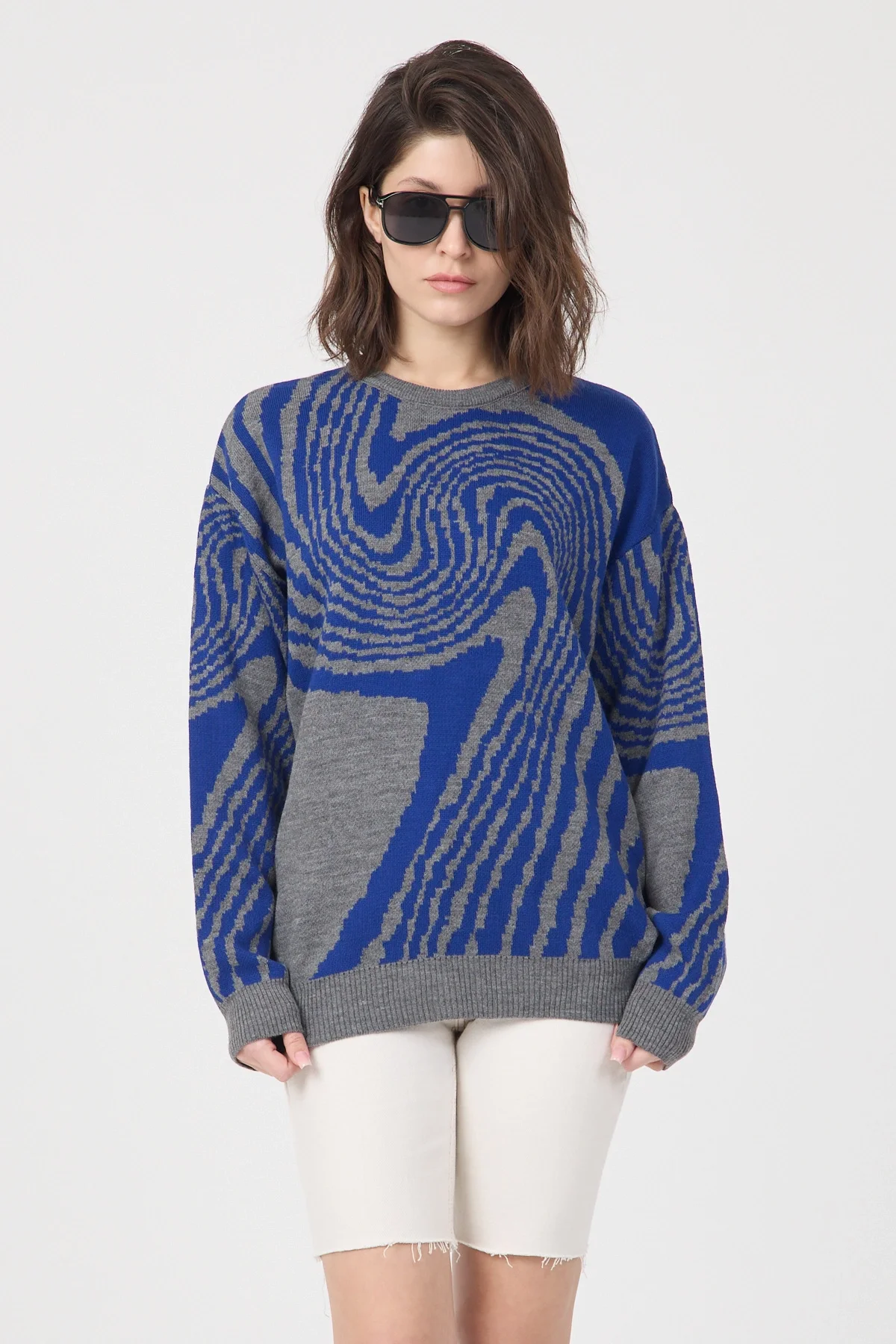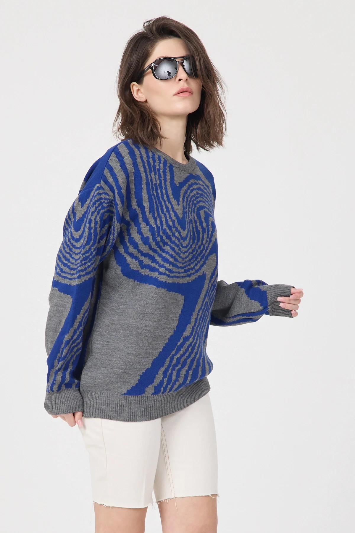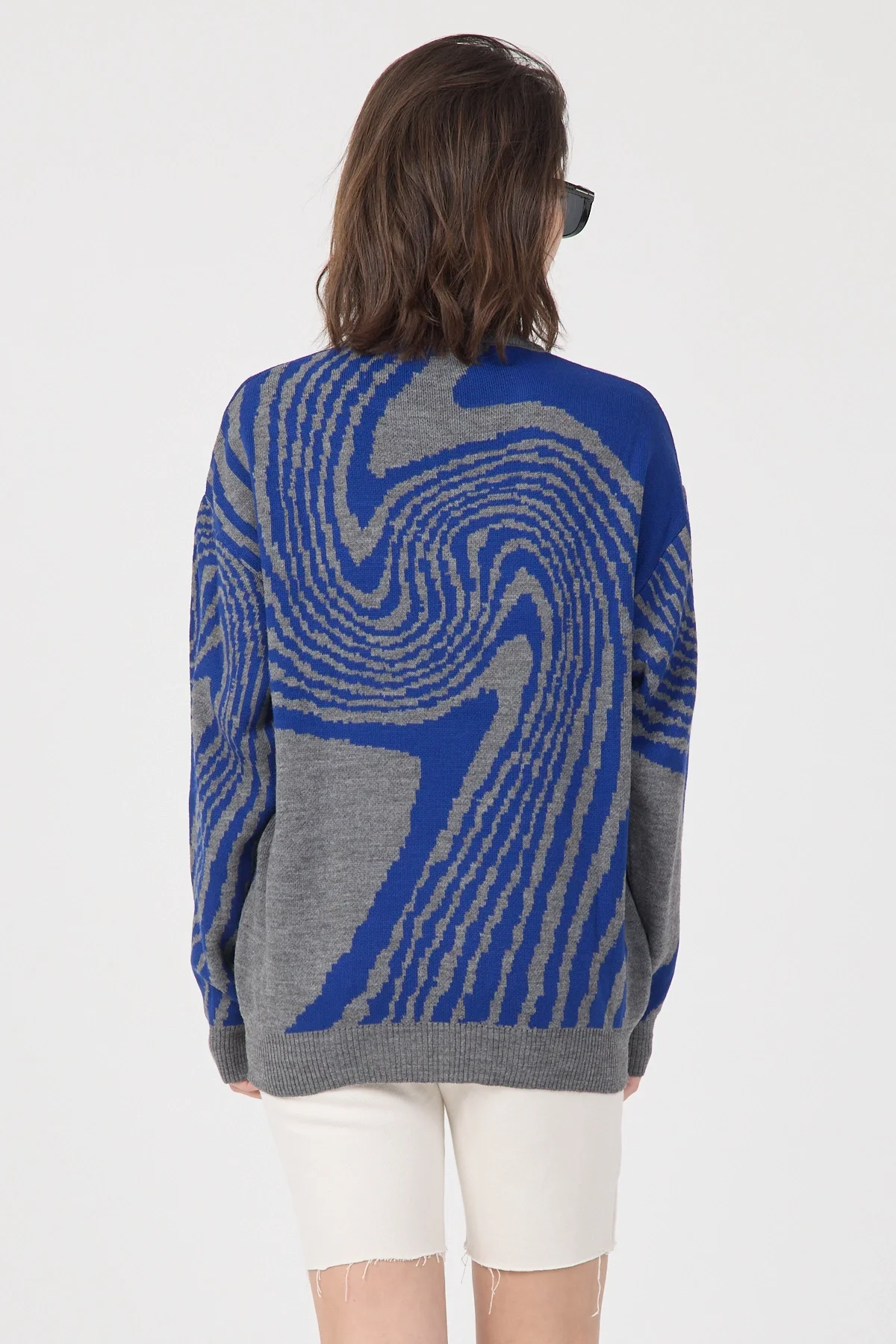 Özgün desen tasarımı ile sade kombinleri bile ön plana çıkaran bu kazak, hem şehir stiline hem de casual kombinlere modern bir hava katar.