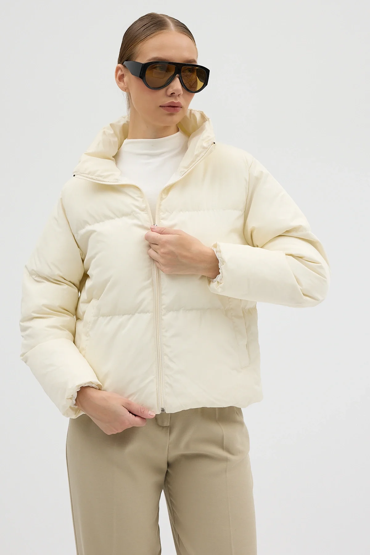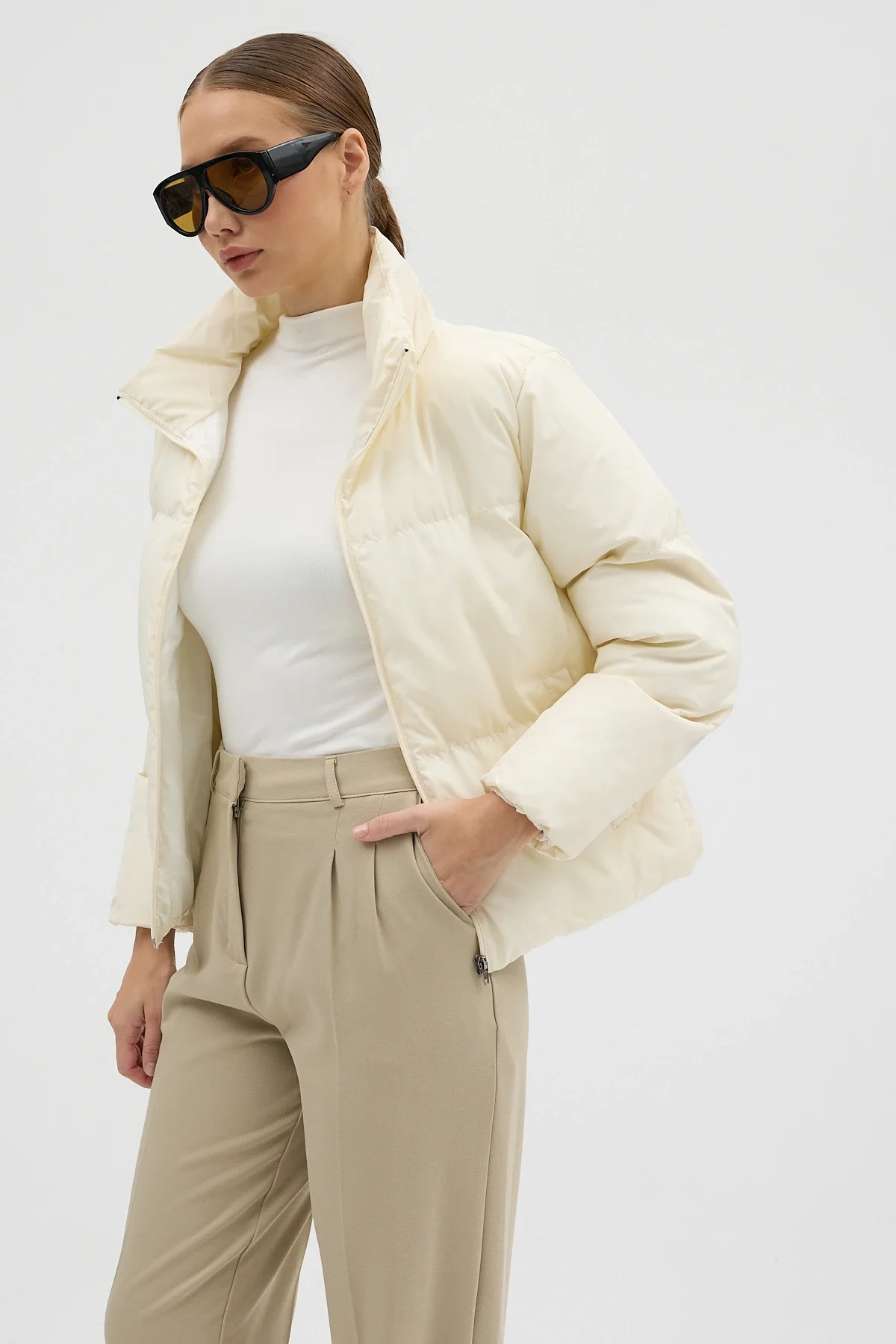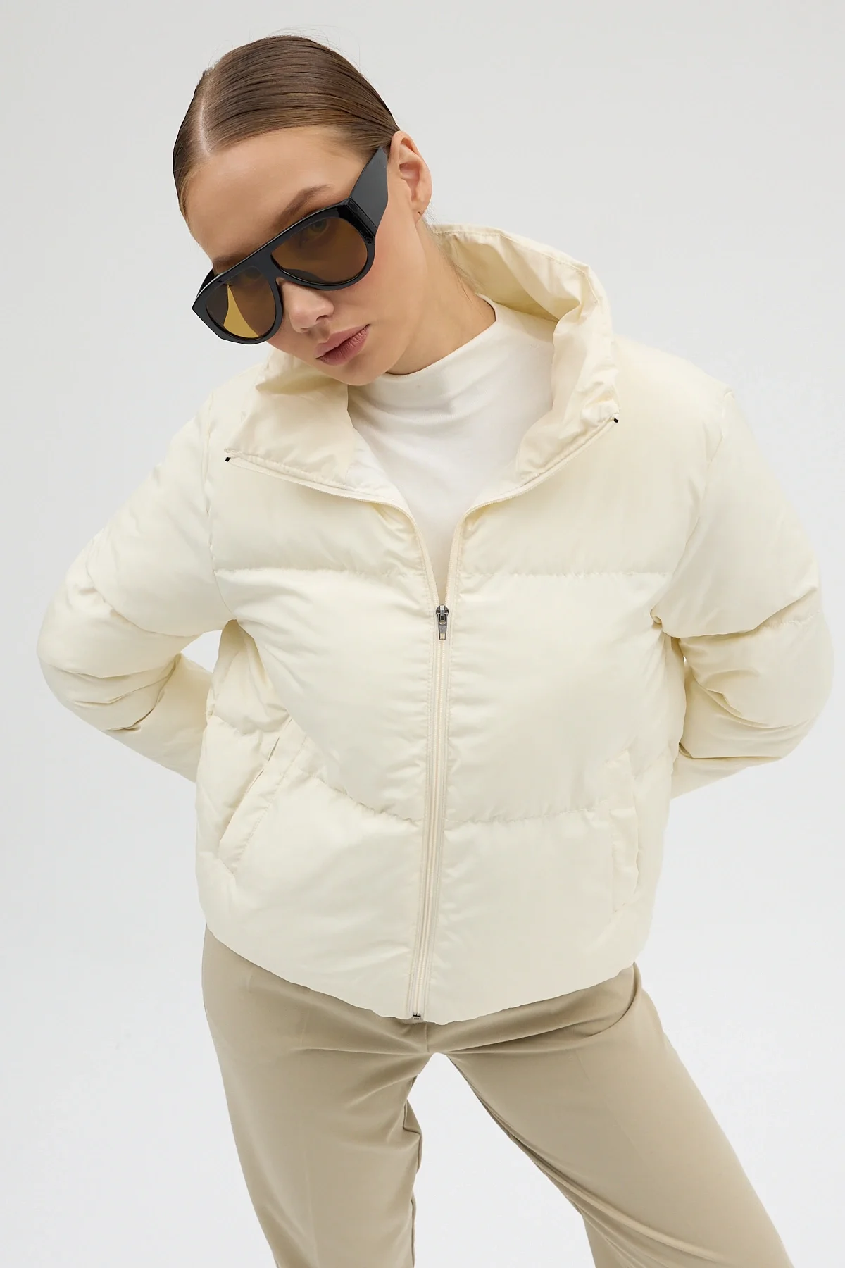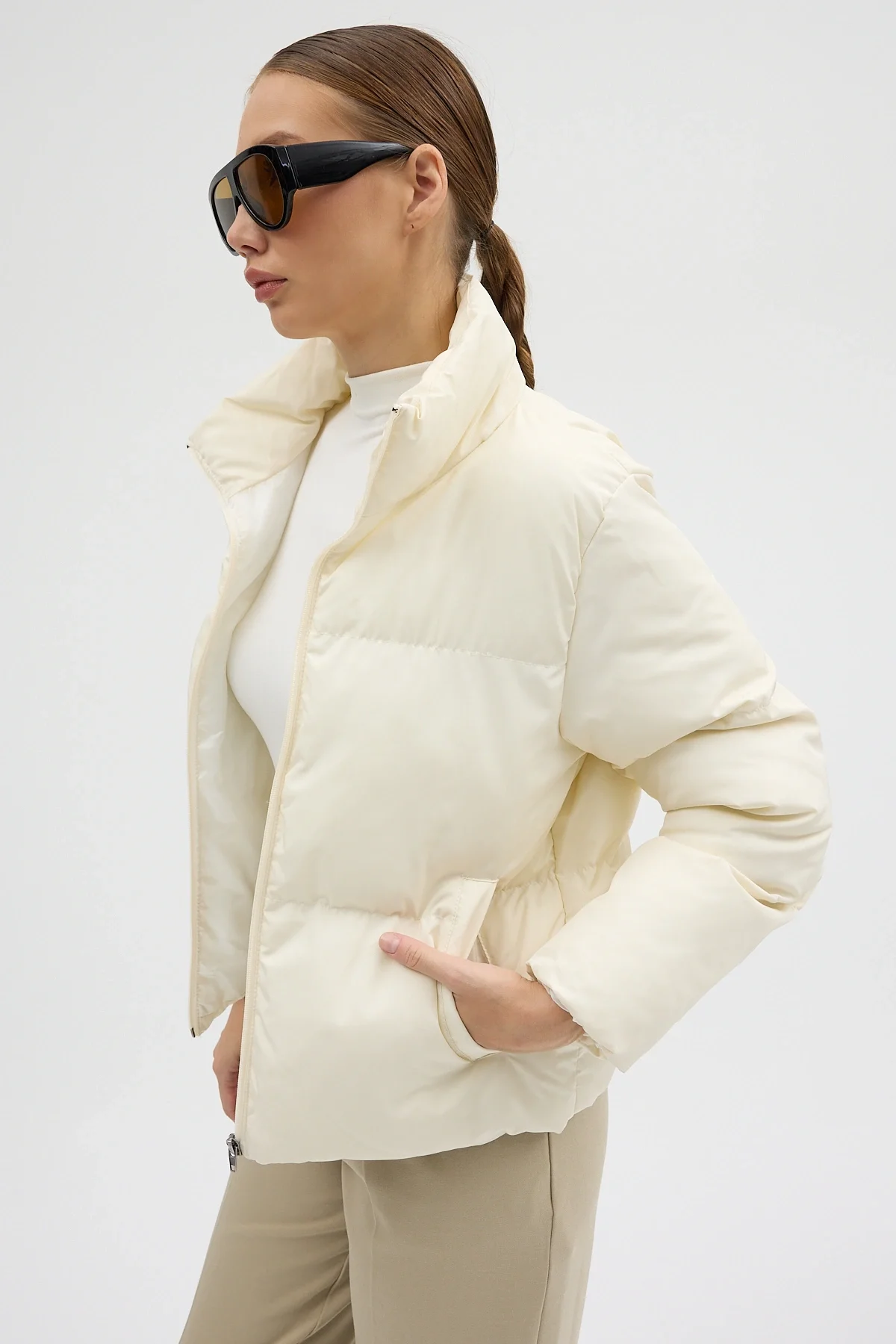 Kış sezonunda hem sıcak tutan hem de şık görünen bir mont arıyorsanız, krem kısa şişme mont tam size göre! %100 polyester kumaşı ve iç astarıyla rüzgâr ve soğuğa karşı koruma sağlar. Fermuarlı kapanışı ve rahat kalıbı sayesinde günlük kullanım için idealdir.