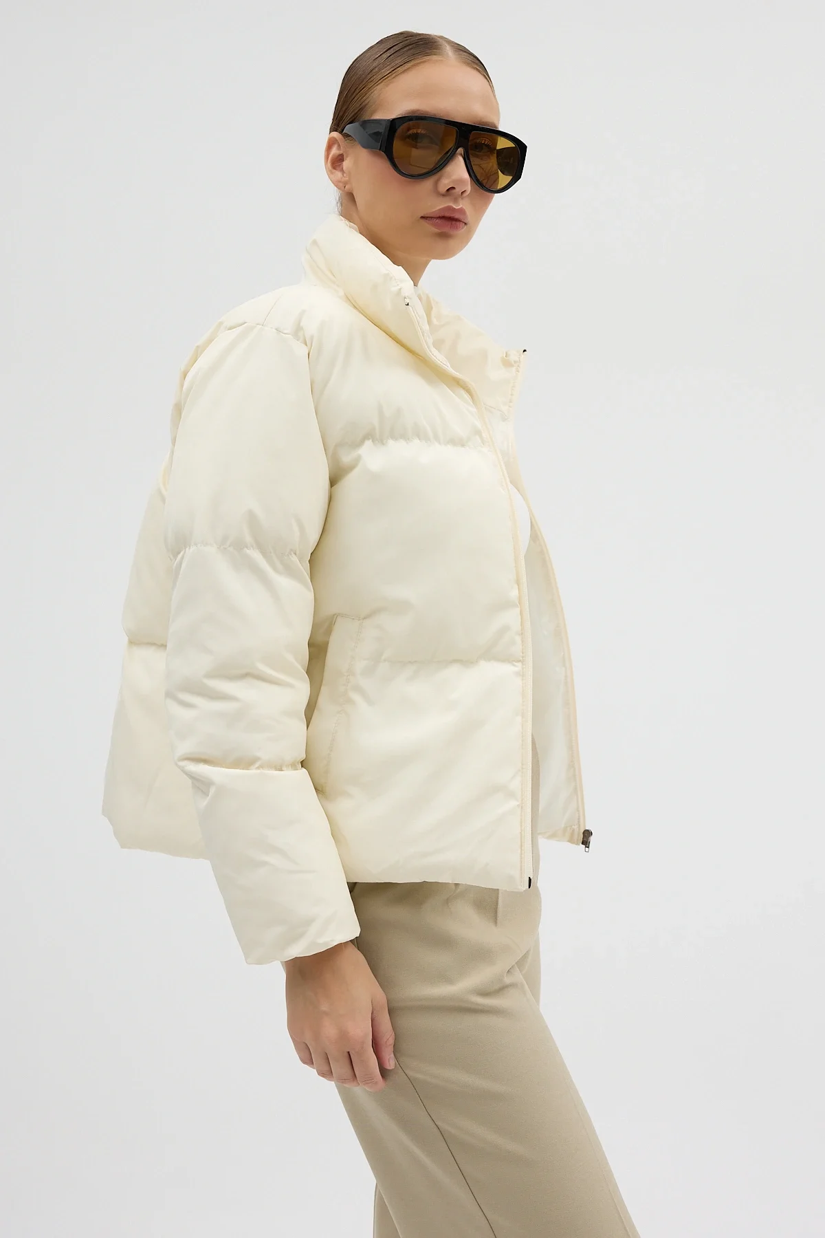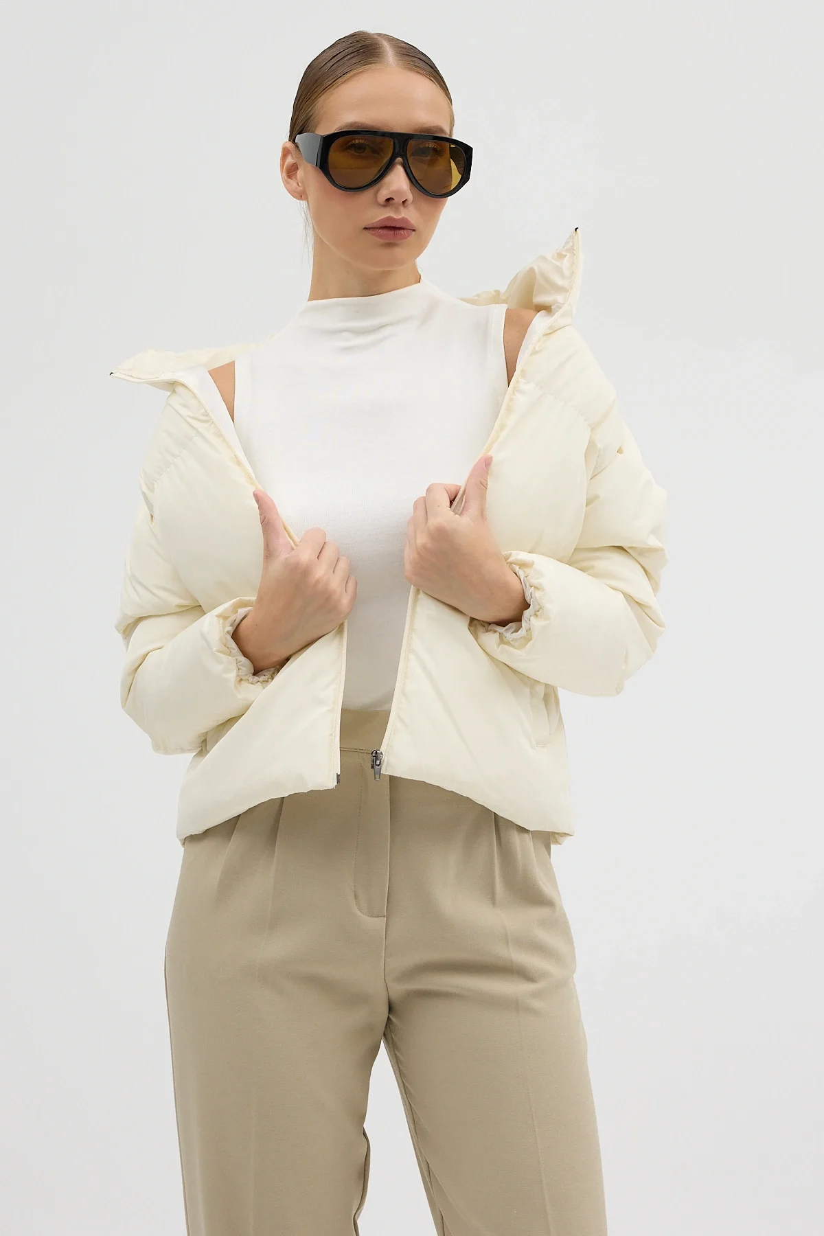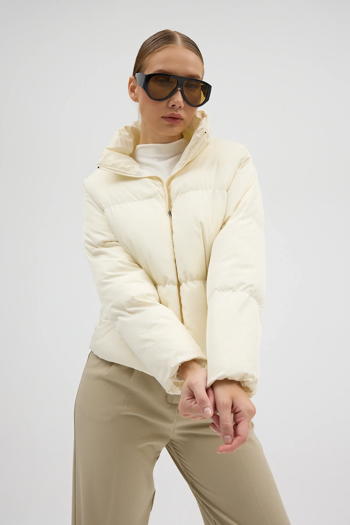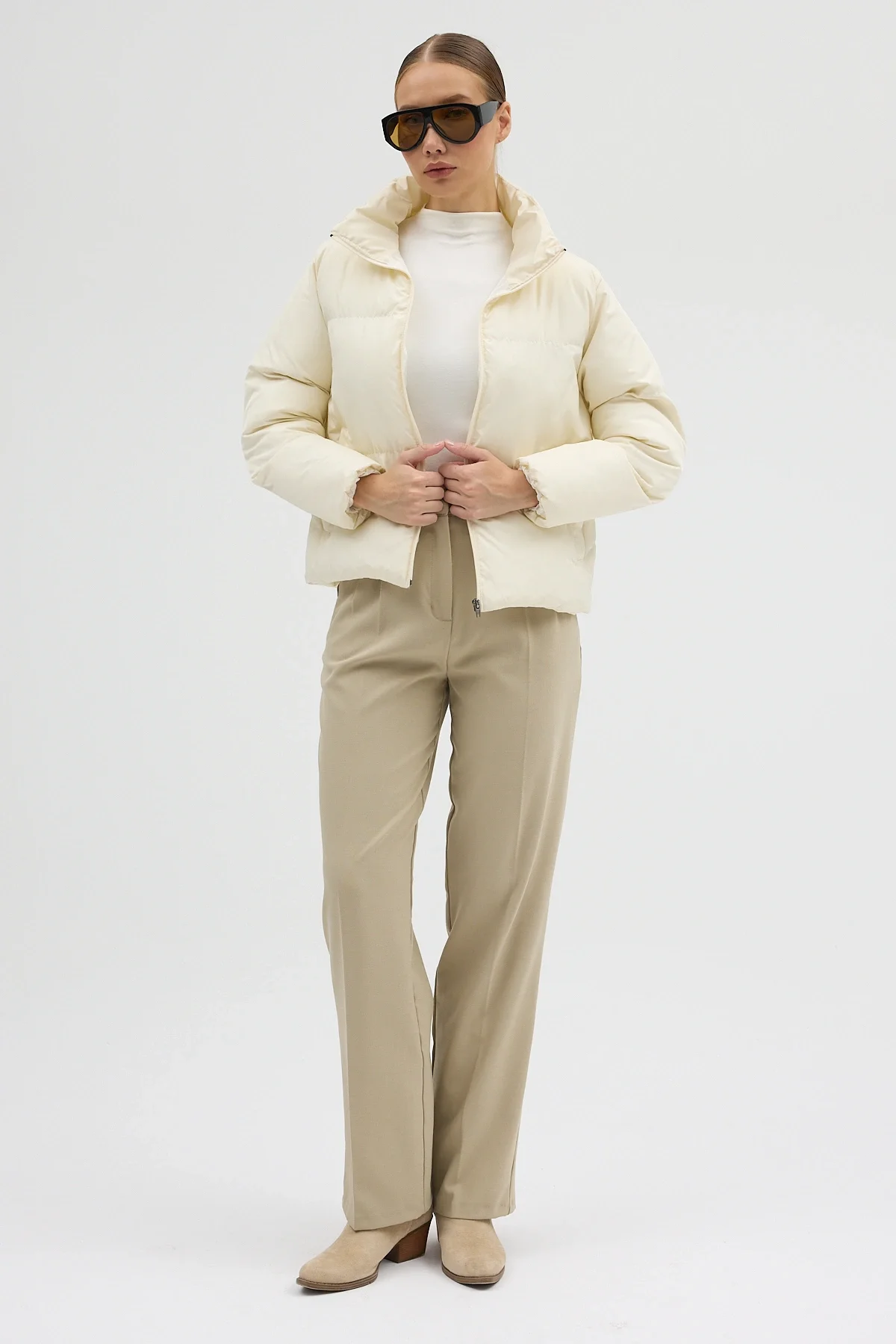 Kış sezonunda hem sıcak tutan hem de şık görünen bir mont arıyorsanız, krem kısa şişme mont tam size göre! %100 polyester kumaşı ve iç astarıyla rüzgâr ve soğuğa karşı koruma sağlar. Fermuarlı kapanışı ve rahat kalıbı sayesinde günlük kullanım için idealdir.