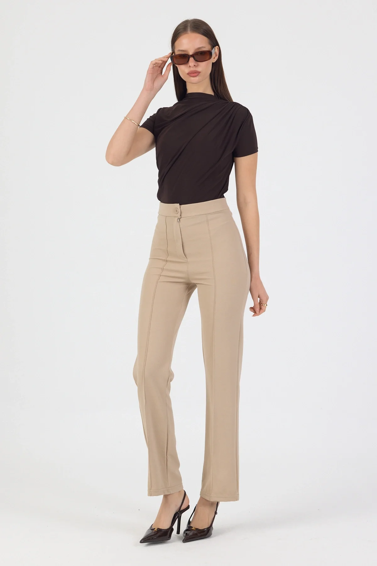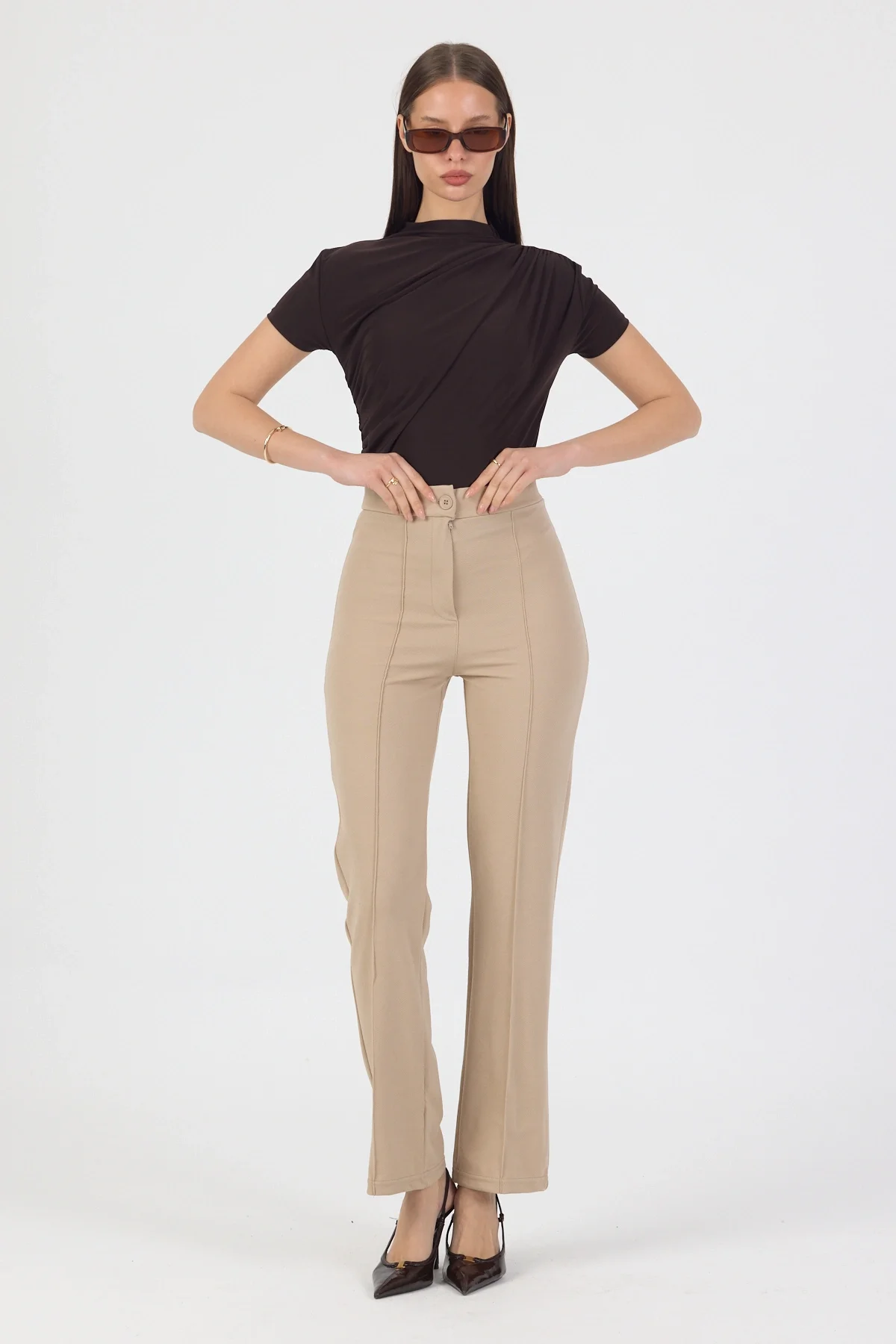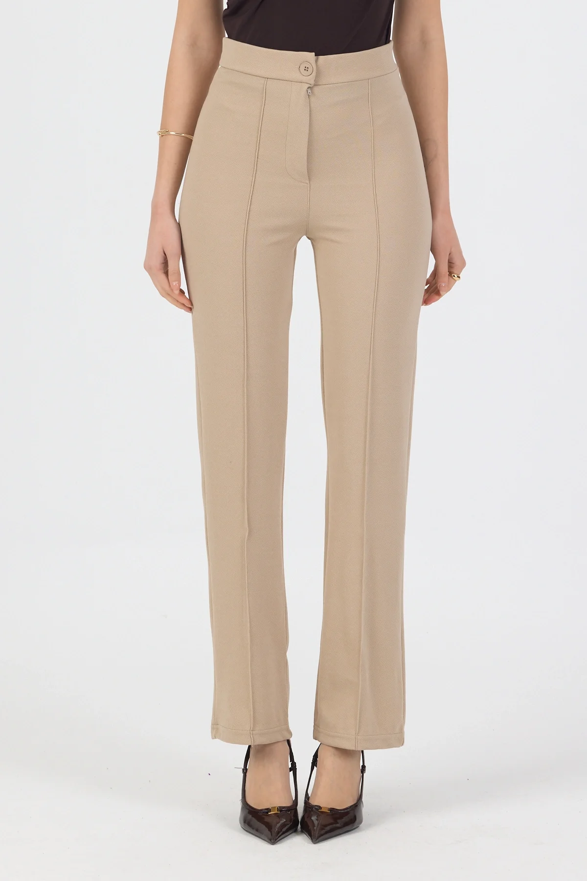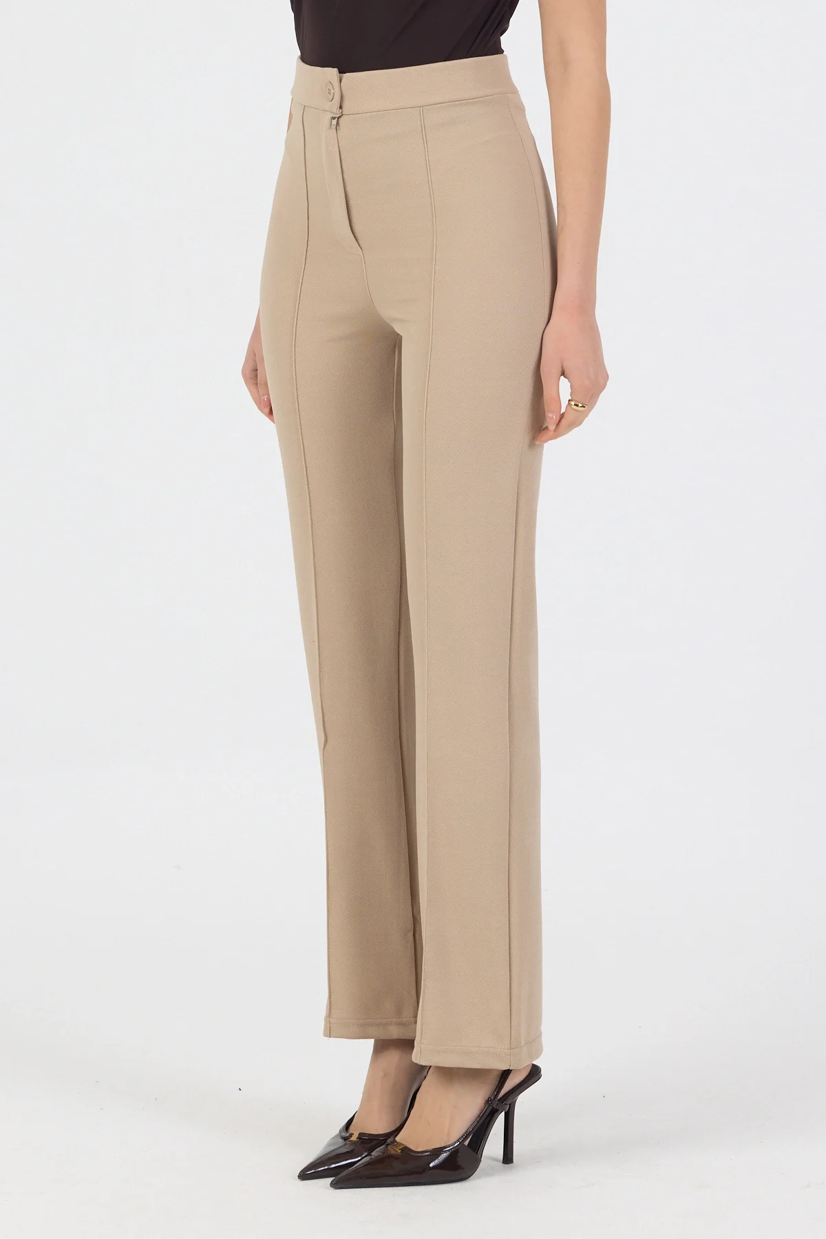 Kadın Likralı Önü Çımalı Krem Kadın Palazzo Pantolon, şıklığı ve rahatlığı bir arada sunuyor. Likralı kumaşı sayesinde vücuda tam oturan bir kesime sahip olan pantolon, özellikle günlük kullanım için idealdir. Krem rengi ise her kombinle uyum sağlayarak farklı stillerde kullanılabilme özelliği sunar. Palazzo kesimi ile hareket özgürlüğü sunan bu pantolon, gün boyu konforlu bir deneyim vadediyor. Kaliteli kumaşıyla uzun ömürlü bir kullanım vadederken, şık tasarımıyla da göz dolduruyor. Kadın Likralı Önü Çımalı Krem Kadın Palazzo Pantolon, tarzınızı tamamlayacak bir parça edinebilirsiniz.