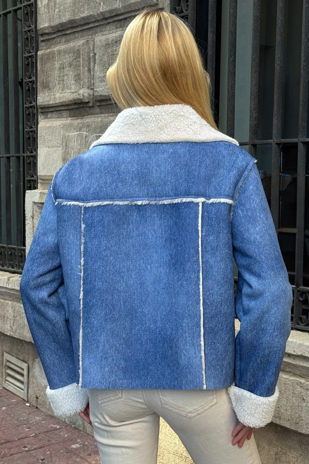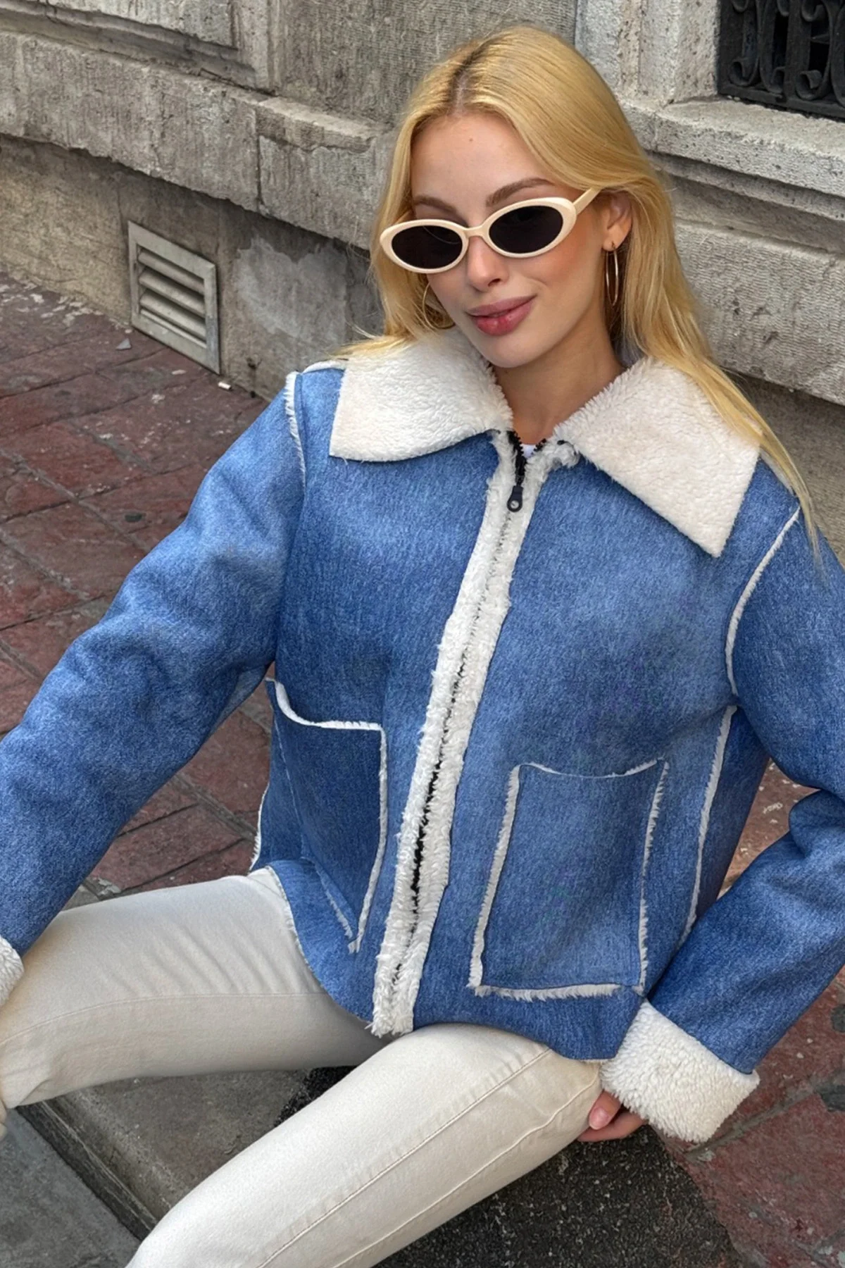 Denim görünümlü, içi ve yakası peluş detaylı fermuarlı mont. Ön kısmında iki cep detayı ile hem şık hem de kullanışlıdır. Rahat kalıbı sayesinde hareket özgürlüğü sunarken, peluş astarıyla soğuk havalarda sıcak tutar. Günlük kombinlerinizi tamamlamak için modern ve konforlu bir seçenektir.