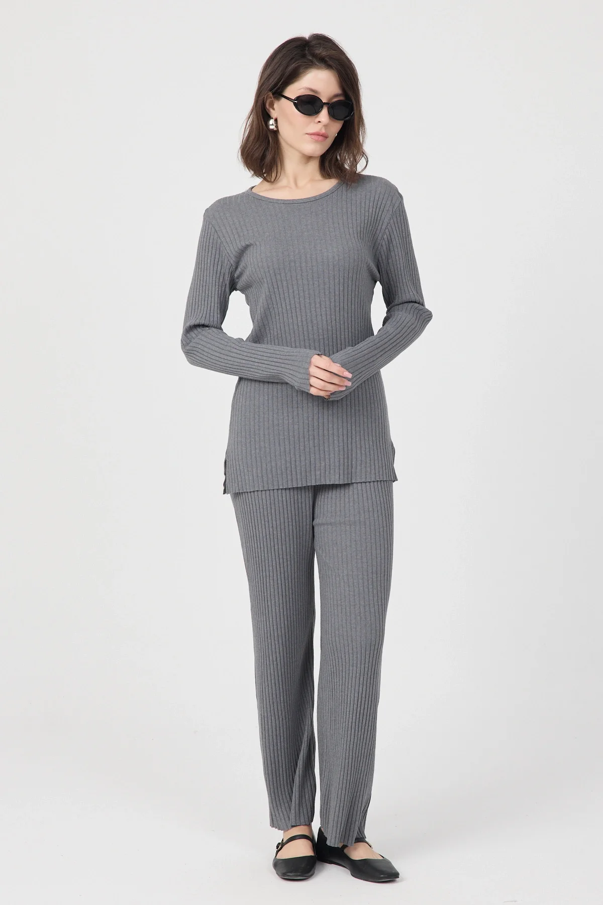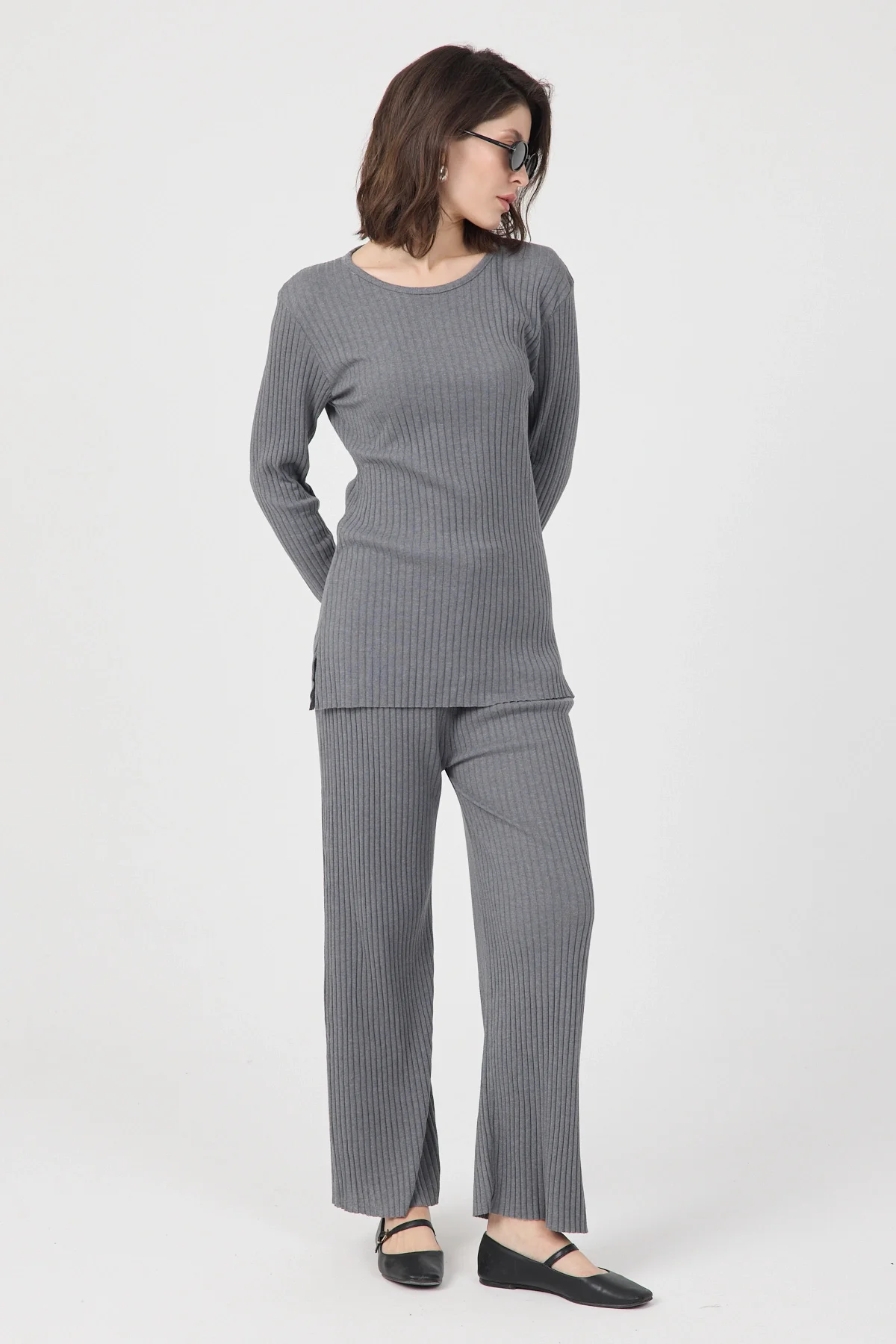 İki parçadan oluşan set, hem üst hem de alt parça olarak tam bir uyum ve şıklık sağlar.