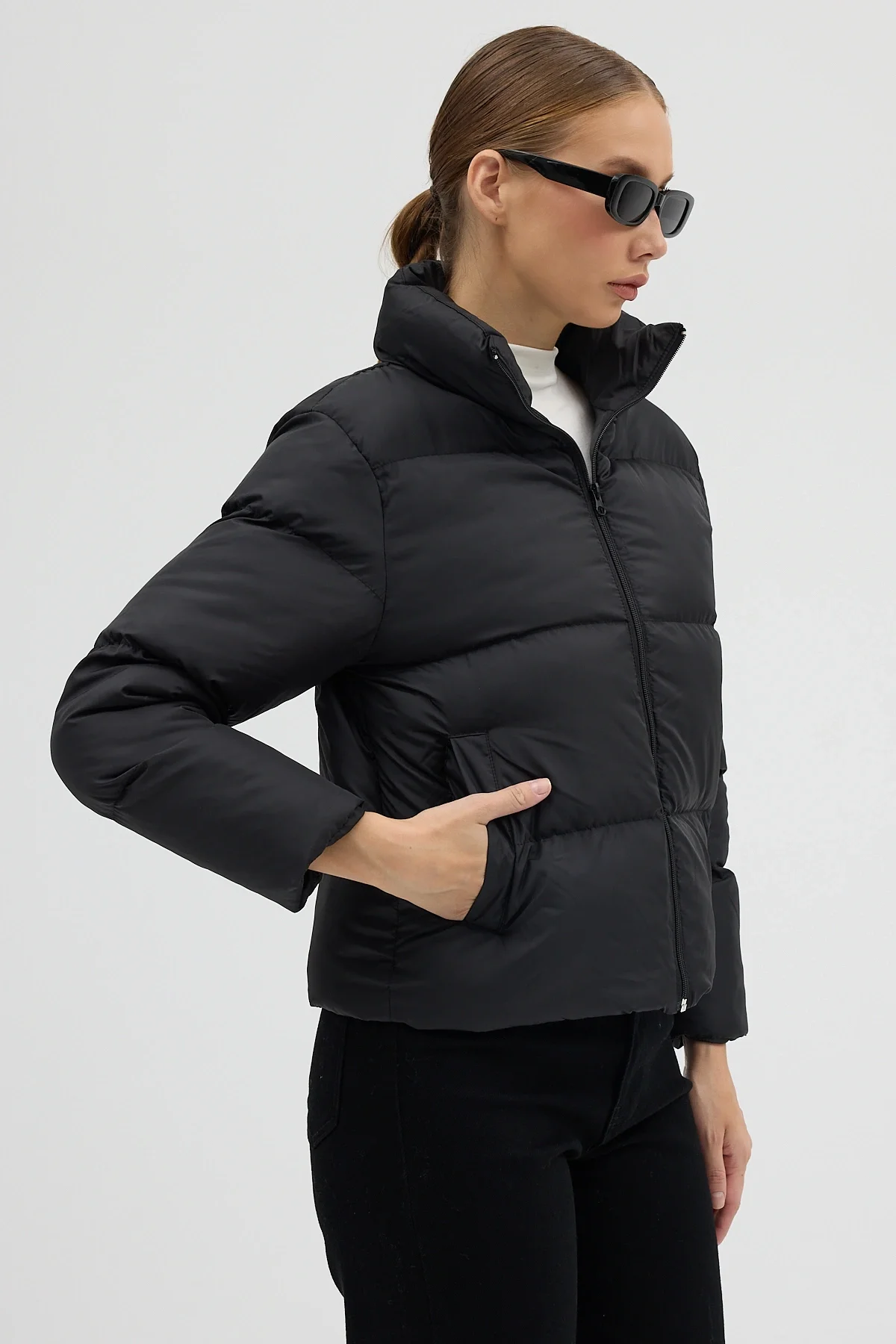 Kış sezonunda hem sıcak tutan hem de şık görünen bir mont arıyorsanız, siyah kısa şişme mont tam size göre! %100 polyester kumaşı ve iç astarıyla rüzgâr ve soğuğa karşı koruma sağlar. Fermuarlı kapanışı ve rahat kalıbı sayesinde günlük kullanım için idealdir.