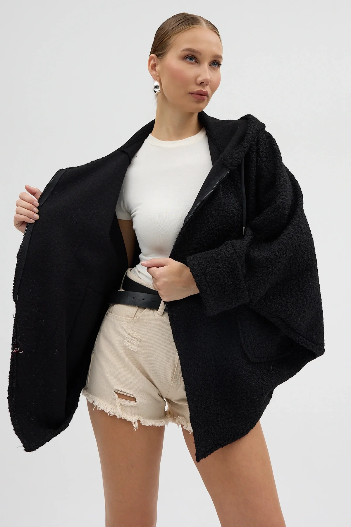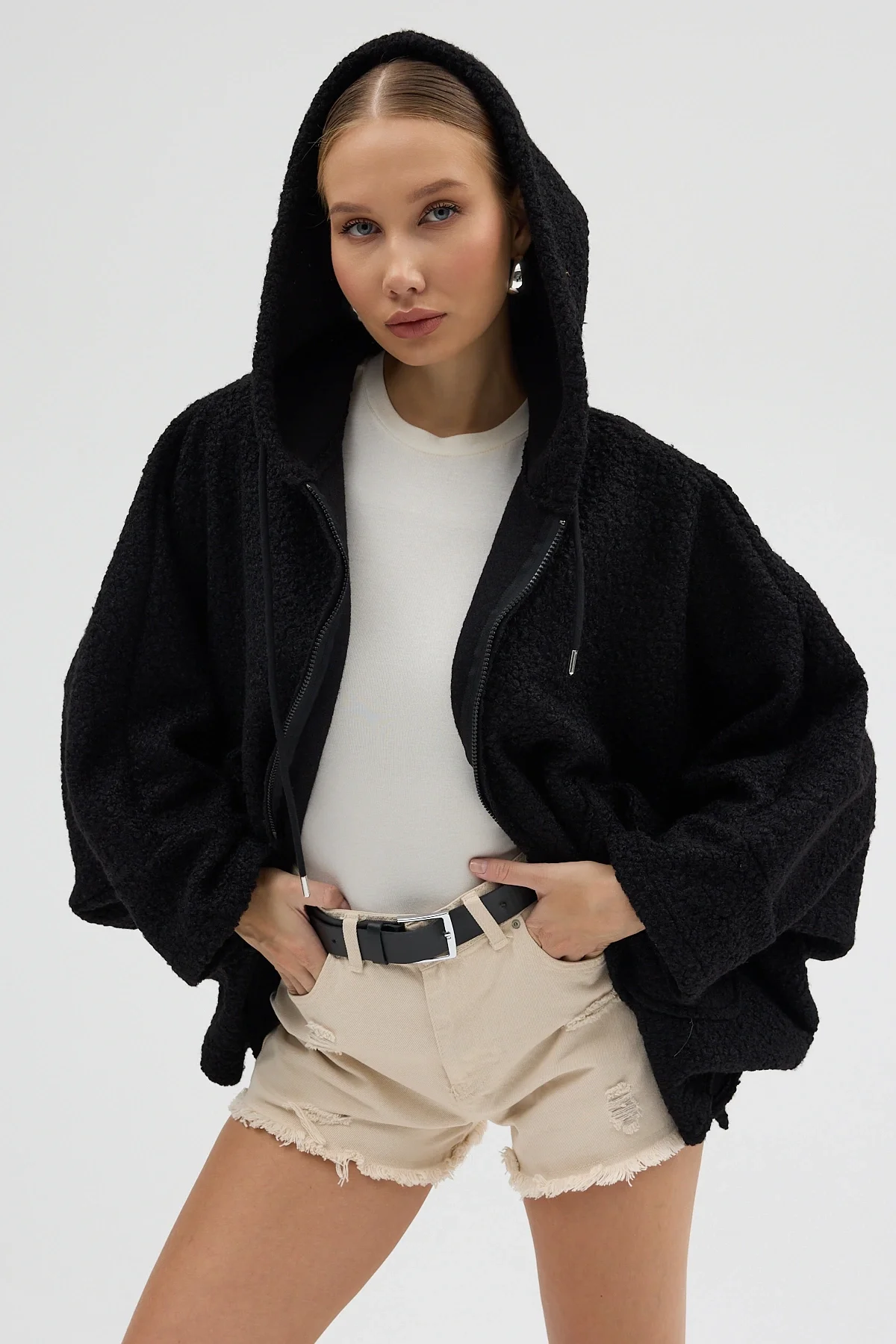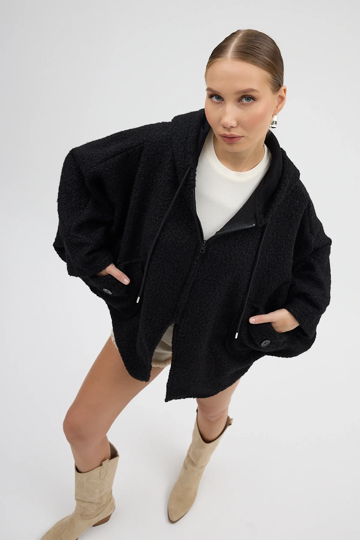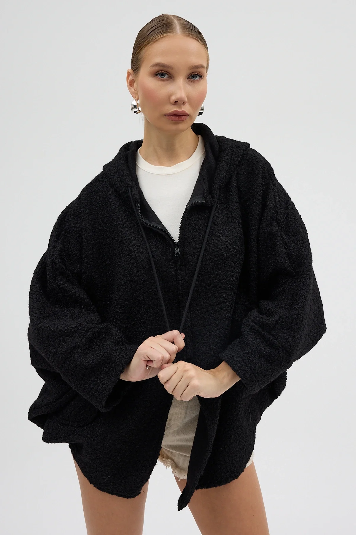 Oversize kesimiyle rahatlığı ön planda tutan bu buklet ceket, kapüşon detayı ve büyük cepleriyle hem spor hem şık kombinlere uyum sağlar. Fermuarlı kapanışı sayesinde pratik kullanım sunarken, kalın ve yumuşak dokusuyla gün boyu sıcak tutar. Mevsim geçişlerinde mont olarak da rahatlıkla kullanılabilir.