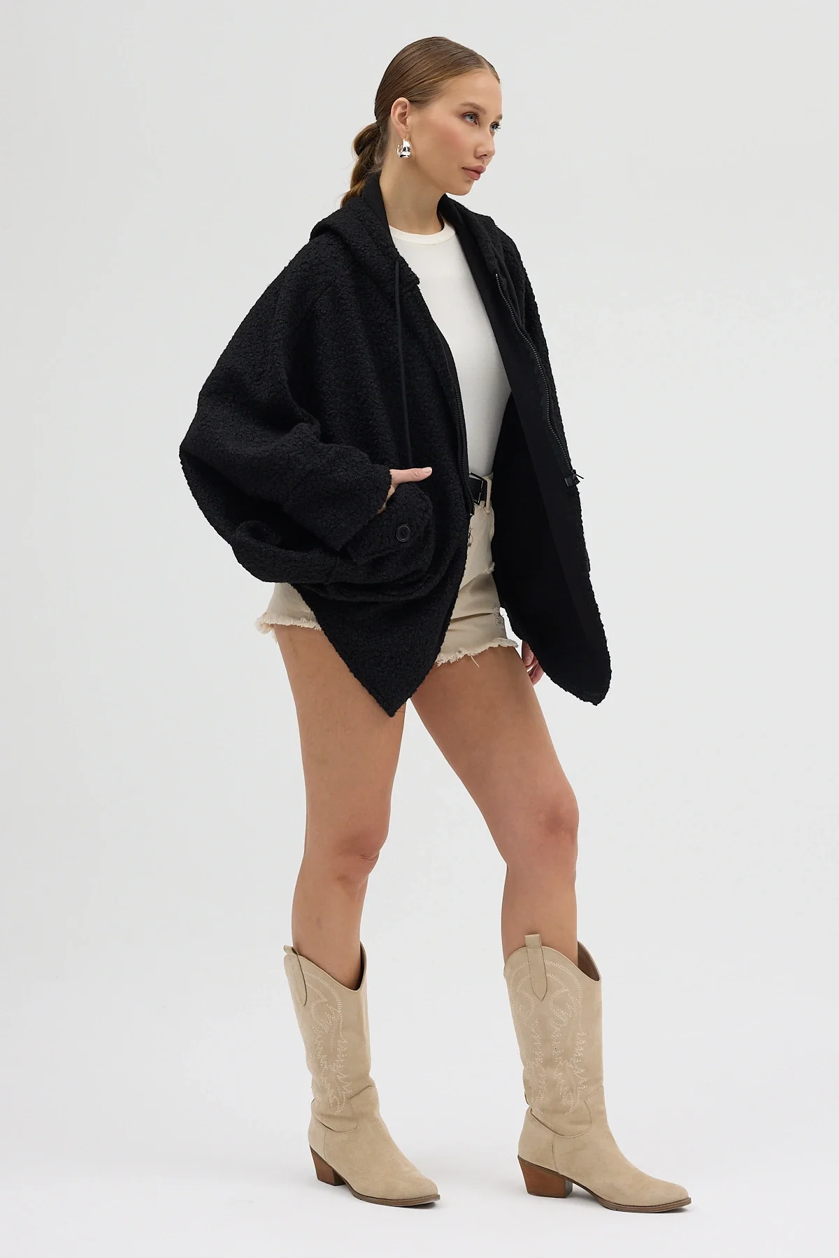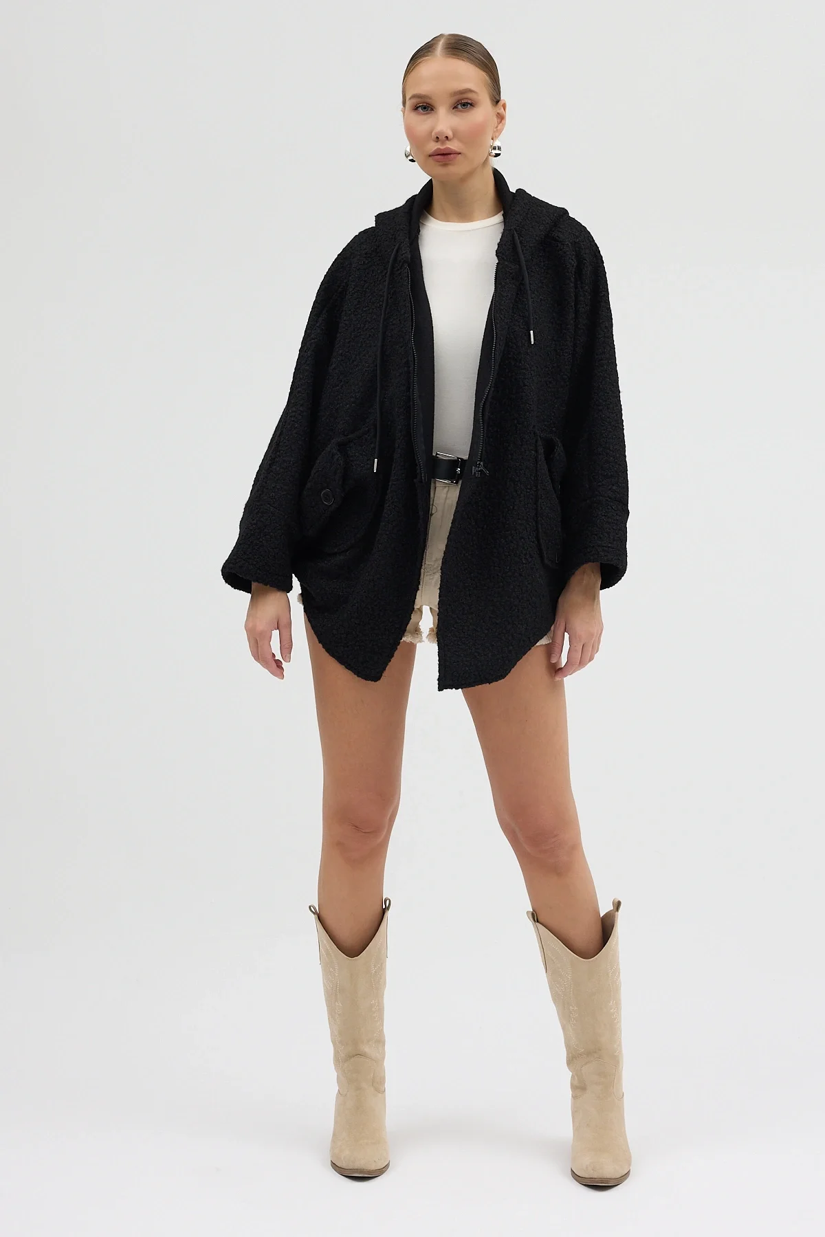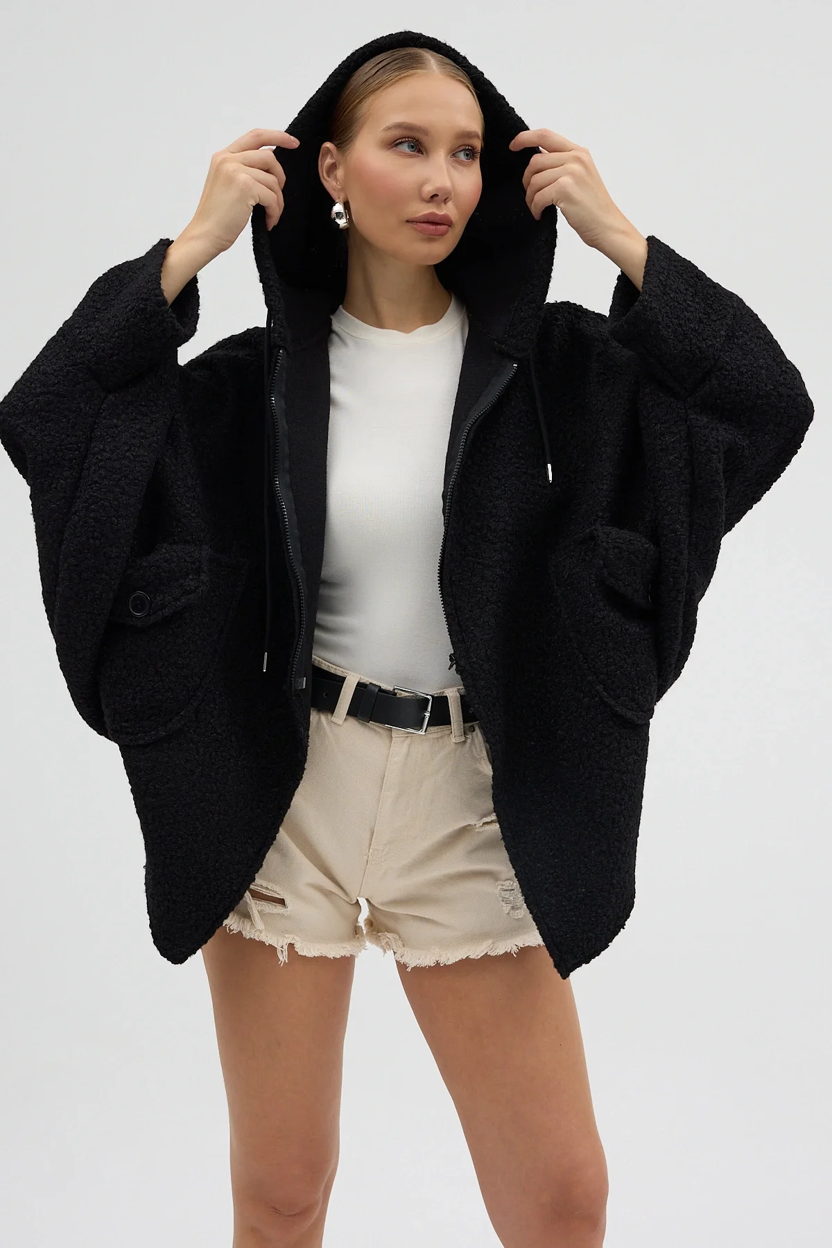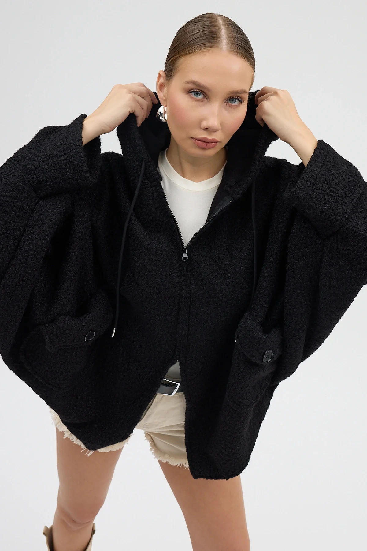 Oversize kesimiyle rahatlığı ön planda tutan bu buklet ceket, kapüşon detayı ve büyük cepleriyle hem spor hem şık kombinlere uyum sağlar. Fermuarlı kapanışı sayesinde pratik kullanım sunarken, kalın ve yumuşak dokusuyla gün boyu sıcak tutar. Mevsim geçişlerinde mont olarak da rahatlıkla kullanılabilir.